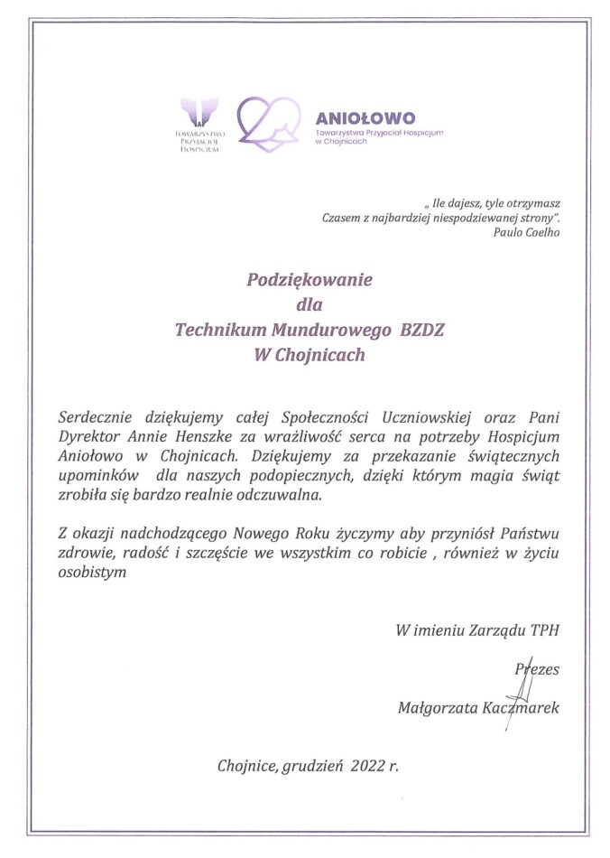Z okazji zbliżających się Świąt Bożego Narodzenia Społeczność Uczniowska przygotowała piękny prezent dla Podopiecznych Towarzystwa Przyjaciół Hospicjum, który został przekazany 23 grudnia Pani Ewie Zielińskiej z rąk naszej Pani Dyrektor. Radości było co niemiara! Następna wizyta w nowym roku…