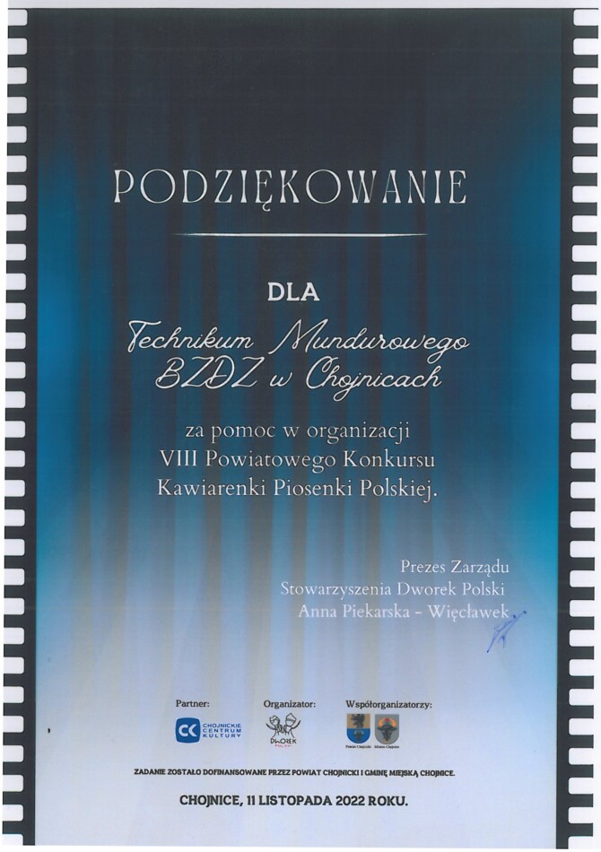 11 listopada 2022r. Stowarzyszenie Dworek Polski był obecny na Starym Rynku w Chojnicach z kawą, rogalikami oraz rowerową rikszą. Tego roku na zapleczu organizowanych przez Dworek wydarzeń pomagali wolontariusze Technikum Mundurowego BZDZ w Chojnicach na czele z Angelo Wahl. Pomogła również Ochotnicza Straż Pożarna w Chojnicach.