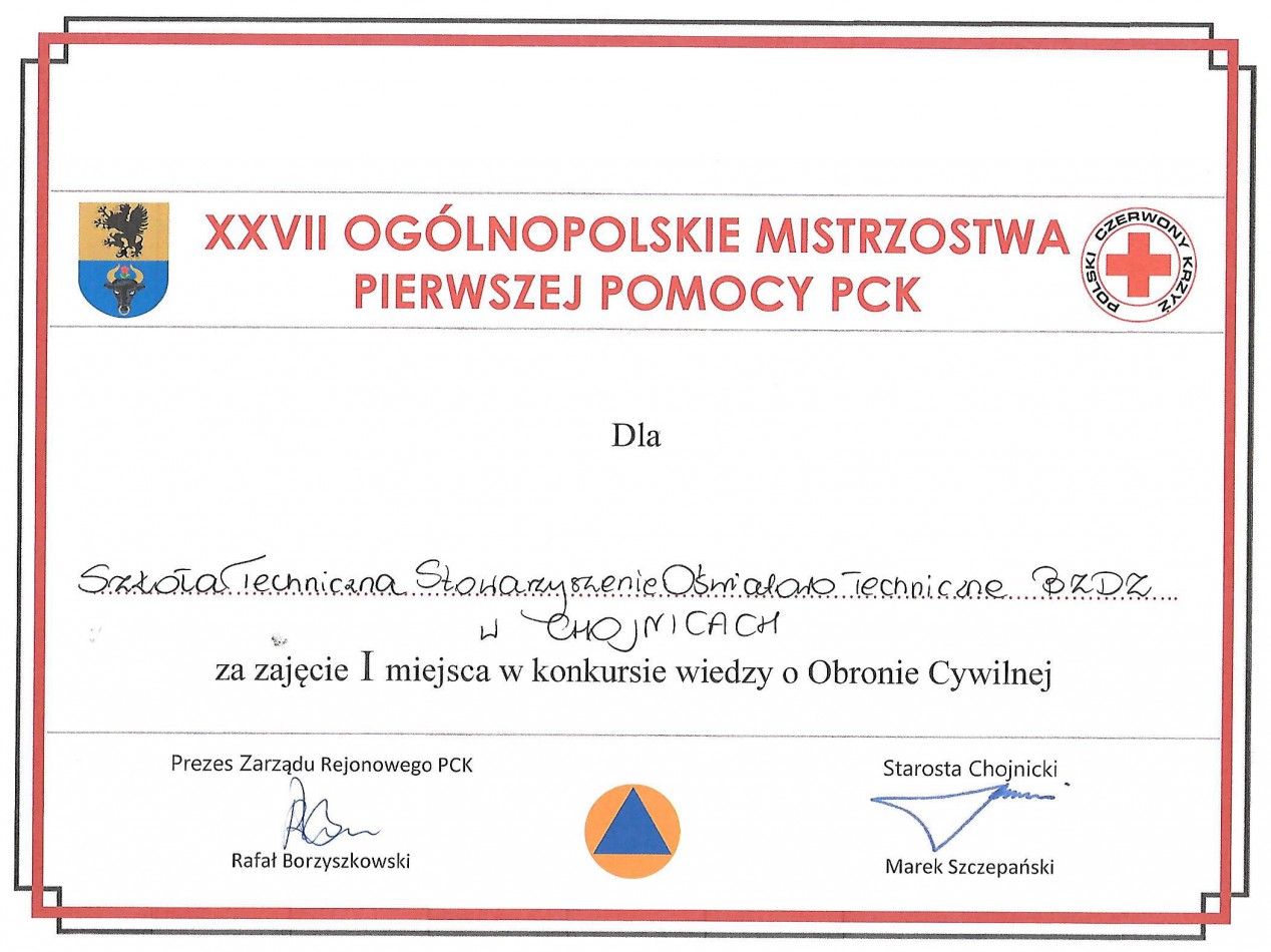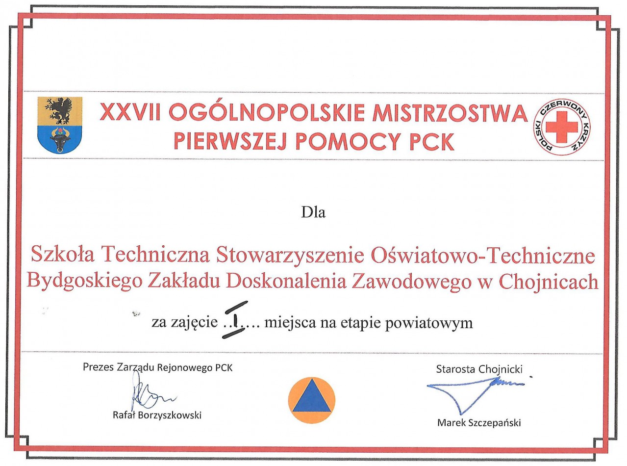 W sobotę 11 maja, w Parku Tysiąclecia w Chojnicach, odbył etap powiatowy XXVII Ogólnopolskich Mistrzostw Pierwszej Pomocy PCK i OC dla szkół ponadgimnazjalnych. Naszą szkołę reprezentowali: Klaudia Gwizdała, Agata Łobocka, Aleksandra Figat, Paulina Falba i Wiktoria Pałbicka. Drużyna naszej szkoły zwyciężyła we wszystkich konkursach, ( trzech drużynowych i jednym indywidualnym) awansując do finału etapu wojewódzkiego, który odbędzie się 19 maja …