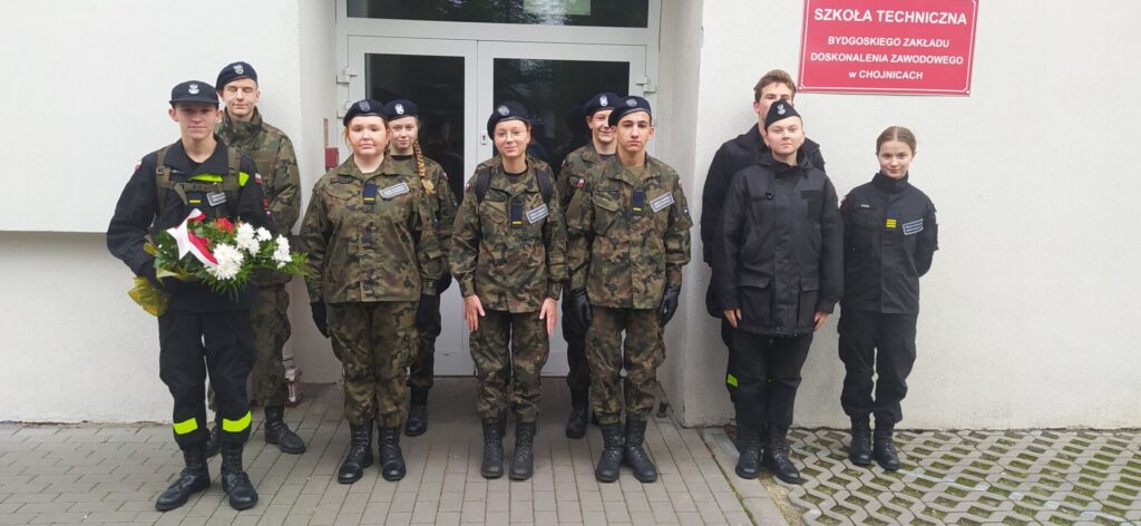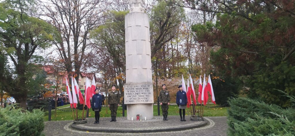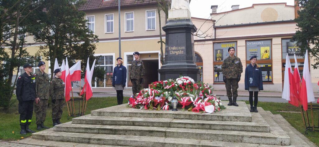 W dniu 11.11.2022 Andrii Sviatelyk, Gracjan Płociński, Agata Adrych, Agnieszka Gruna, Oliwia Bobkowska, Aleksandra Gliniecka, Adam Laskowski, Joanna Orlikowska, Julia Nowak oraz Tomasz Wiese pełnili wartę honorową przy pomniku Orła Białego i Chrystusa Króla oraz złożyli kwiaty w imieniu szkoły pod pomnikiem Orła Białego podczas Powiatowych Obchodów Święta Niepodległości.