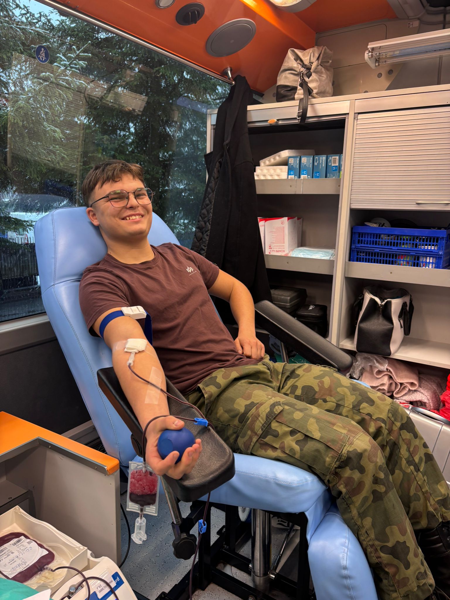 Za nami pierwsza taka akcja z tak super wynikiem! Zebraliśmy 17 150 ml! Wszystkie współpracujące służby mundurowe: 34 Chojnicki Batalion Radiotechniczny ,Wojskowe Centrum Rekrutacji w Człuchowie, Komenda Powiatowa Policji w Chojnicach, Komenda Powiatowa PSP w Chojnicach, OSP Chojnice, Straż Miejska Chojnice, Oddział Zewnętrzny w Chojnicach aktywnie włączyły się w naszą wspólną akcję wraz z kadetami, którzy z ogromnym zaangażowaniem oddali ten cenny dar życia. Pani psycholog Dominika Szałkowska i Pani pedagog Paulina Wcisło jako jedne z pierwszych zasiadły na fotelach w krwiobusie. Swoją obecnością zaszczycili nas Pan wiceburmistrz Adam Kopczyński oraz Pani prezes Centrum Park Wodny Żaneta Janowicz, którzy podczas oddawania krwi rozmawiali z uczniami o szczytnym celu, jakim jest pomaganie i ratowanie życia ludzkiego.