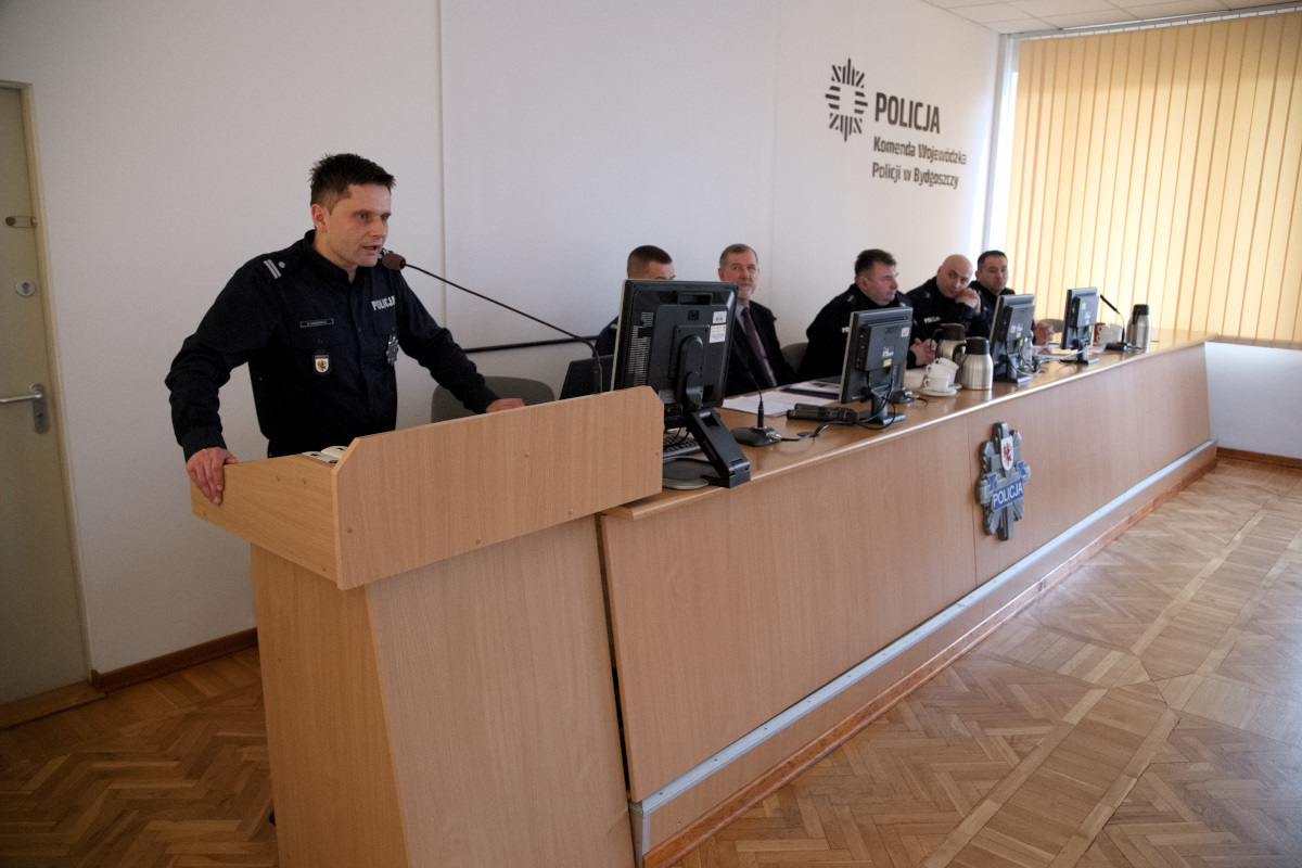 Gości konferencji powitał Pierwszy Zastępca Komendanta Wojewódzkiego Policji w Bydgoszczy, insp. Mirosław Elszkowski. Jej uczestnikami byli przedstawiciele oświaty i policji oraz asp. sztab. Dariusz Piekarski z Komendy Powiatowej Policji w Chojnicach, który jest opiekunem klas mundurowych przy Technikmum Mundurowym BZDZ Bydgoszcz w Chojnicach.