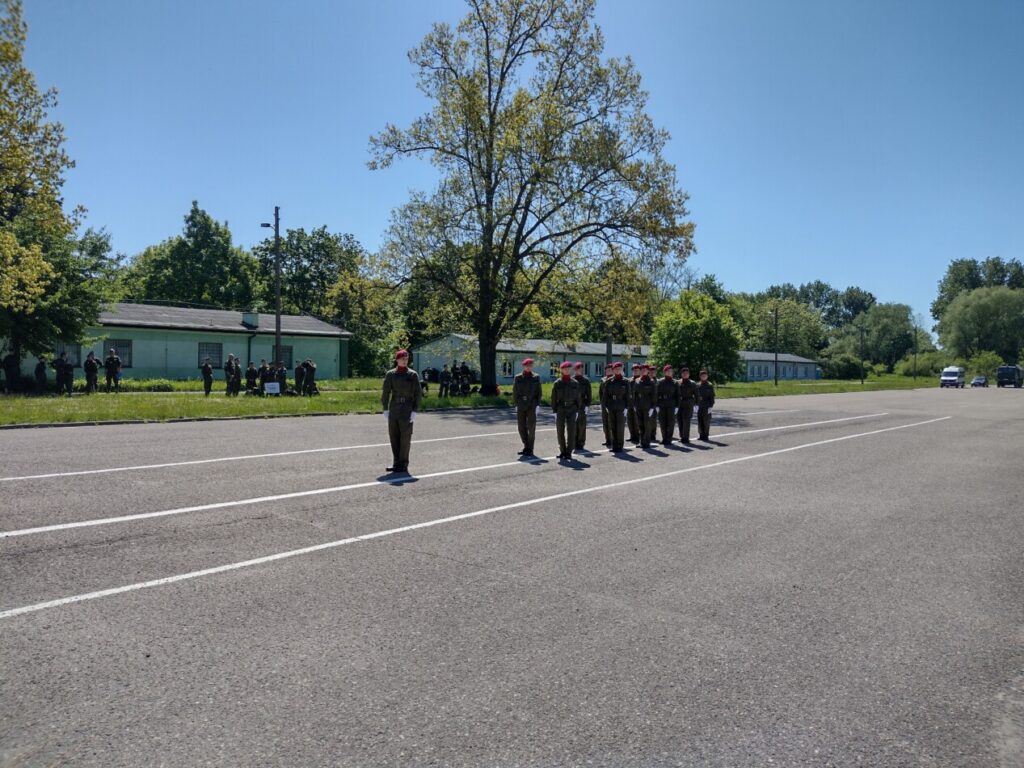 Po przeprowadzeniu 8 obowiązkowych zadań obejmujących umiejętności musztry indywidualnej i zespołowej z zakresu „Regulaminu musztry Sił Zbrojnych Rzeczypospolitej Polskiej” przystąpiliśmy do kolejnych dwóch – marszowych. Na początek defilada po pasie startowym w rytm „Warszawianki” – wyszło równo, pięknie. Nasi kadeci ubrani w szkarłatne berety, w szkarłatne apaszki, pasy skórzane i w białych rękawiczkach „zrobili furorę” – zebrali oklaski. Jednakże „położyli wszystkich na łopatki” przemarszem z piosenką „Kalina malina” na ustach. Rewelacja. Widać było ogromne zaangażowanie na pokazie, poparte regulaminowym przygotowaniem.