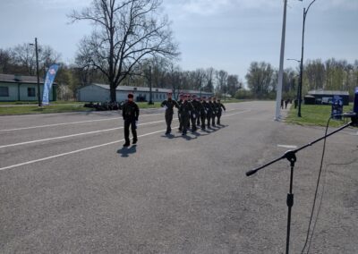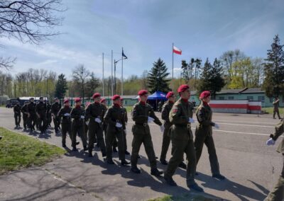 Do przeglądu przystąpiło 9 drużyn reprezentujących szkoły o profilu wojskowym. Po przeprowadzeniu 9 obowiązkowych zadań obejmujących umiejętności musztry indywidualnej i zespołowej z zakresu „Regulaminu musztry Sił Zbrojnych Rzeczypospolitej Polskiej” przystąpiliśmy do kolejnej próby – marszowej. Nasi kadeci ubrani w szkarłatne berety, w szkarłatne apaszki, pasy skórzane i w białych rękawiczkach „pokazali klasę” – było pięknie. Wykonaliśmy przemarsz z piosenką „Kalina malina”. Rewelacja. Widać było ogromne zaangażowanie na pokazie, poparte regulaminowym przygotowaniem.