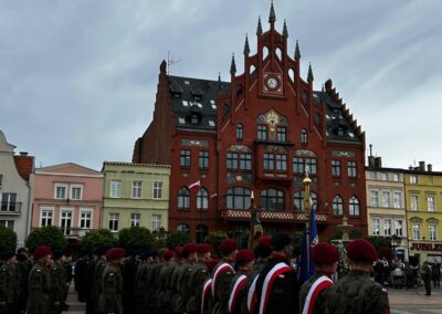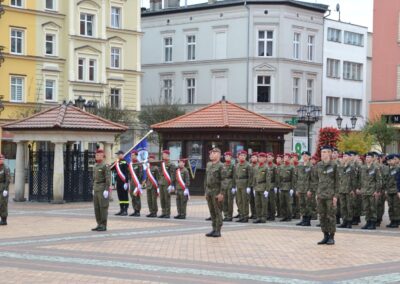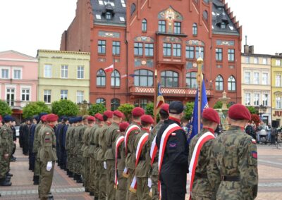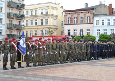10 października kolejni kadeci uroczyście ślubowali na sztandar szkoły. Na płycie Starego Rynku świadkami naszej uroczystości byli: Pan Adam Kopczyński – Zastępca Burmistrza Miasta Chojnice, Pan Paweł Duzdowski – Prezes Bydgoskiego Zakładu Doskonalenia Zawodowego Stowarzyszenia Oświatowo-Technicznego, Pan ppłk Mariusz Miłkowski – Dowódca 34 Chojnickiego Batalionu Radiotechnicznego, Pan mł. insp. Paweł Molis – I Zastępca Komendanta Powiatowego Policji w Chojnicach, Pan bryg. Rafał Buszek – Zastępca Komendanta Powiatowego Państwowej Straży Pożarnej w Chojnicach, Pan kpt Piotr Zając – Szef Wydziału Rekrutacji Wojskowego Centrum Rekrutacji w Człuchowie, Pan Jarosław Piechowski – Komendant Straży Miejskiej w Chojnicach, Pan mjr Robert Kwasigorch – Kierownik działu penitencjarnego Oddziału Zewnętrznego w Chojnicach, Pan Mariusz Paluch – Prezes Promocji Regionu Chojnickiego, Pan Andrzej Sawicki – Przedstawiciel Związku Zawodowego Maszynistów Kolejowych w Chojnicach. Zaproszeni goście gratulowali kadetom, a pani Dyrektor Anna Henszke życzyła: „Niech treść ślubowania będzie drogowskazem na kolejne lata Waszego życia, drodzy kadeci. Nasze wartości: TOLERANCJA, POMOC, SZACUNEK i NAUKA niech towarzyszą Wam przez kolejne dni, miesiące, lata”.