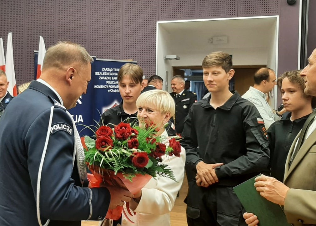 W dniu 21 lipca 2023r. uczniowie naszej szkoły uczestniczyli w uroczystej akademii z okazji Święta Policji. Uroczystość miała miejsce w siedzibie Centrum Edukacyjno-Wdrożeniowym w Chojnicach. Akademii przewodniczył Komendant Wojewódzki Policji w Gdańsku – nadinspektor Andrzej Łapiński, przedstawiciele innych służb mundurowych, a także emerytowani funkcjonariusze. Uczniowie naszej szkoły, na ręce Komendant Powiatowego Policji w Chojnicach – inspektora Wojciecha Jakubowskiego, złożyli życzenia z okazji Ich Święta i podziękowali za dotychczasową współpracę.