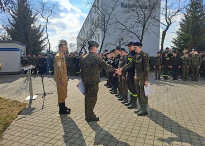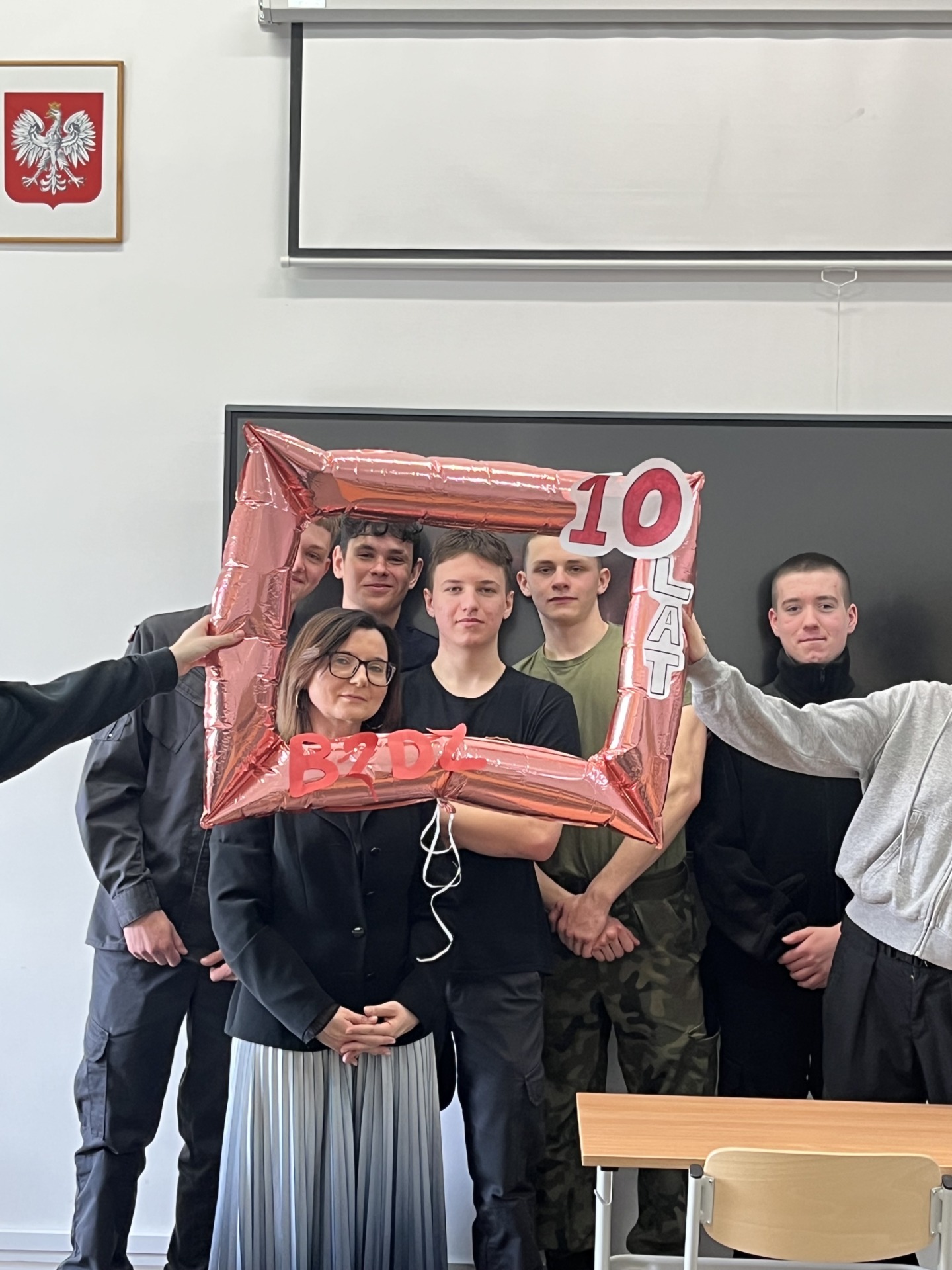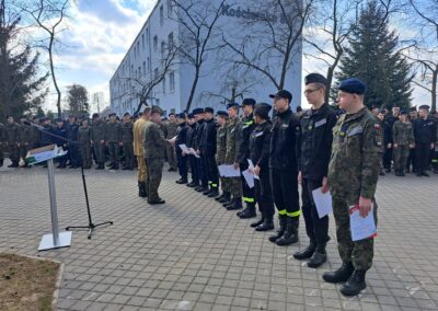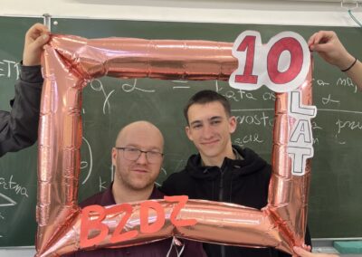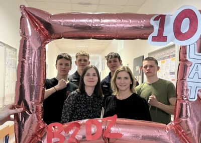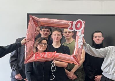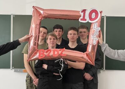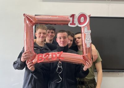 Zaczęliśmy od 24.03.2025 r. – tego dnia odbył się uroczysty apel z okazji 10-lecia Szkoły, podczas którego nauczyciele oraz uczniowie wręczyli podziękowania Dyrekcji za lata owocnej współpracy. Podczas apelu przyznano również awanse zasłużonym uczniom.