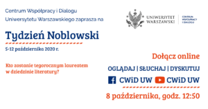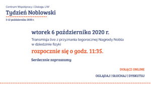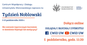 Bierzemy udział w Tygodniu Noblowskim organizowanym przez Centrum Współpracy i Dialogu działającym przy Uniwersytecie Warszawskim. Od wczoraj w Sztokholmie przyznawane są najbardziej prestiżowe nagrody w świecie nauki – Nagrody Nobla. Eksperci UW i Warszawskiego Uniwersytetu Medycznego relacjonują na żywo ogłaszanie tegorocznych noblistów oraz przybliżają znaczenie wyróżnionych osiągnięć.