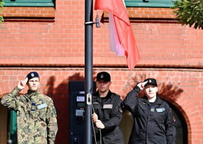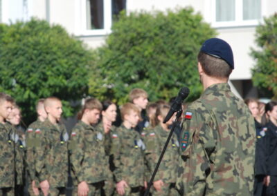 Uroczystość rozpoczęła się od złożenia meldunku przez starszego kaprala kadeta Jakuba Grudzińskiego Pani Dyrektor Annie Henszke. Odśpiewano hymn państwowy podczas podnoszenia flagi na maszt, po którym nastąpiło uroczyste ślubowanie.