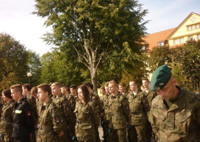 ul. Powstańców Warszawy 2 odbyło się uroczyste ślubowanie uczniów klas pierwszych mundurowych o profilu: wojskowym, policyjnym i strażackim Bydgoskiego Zakładu Doskonalenia Zawodowego Stowarzyszenia Oświatowo – Technicznego.