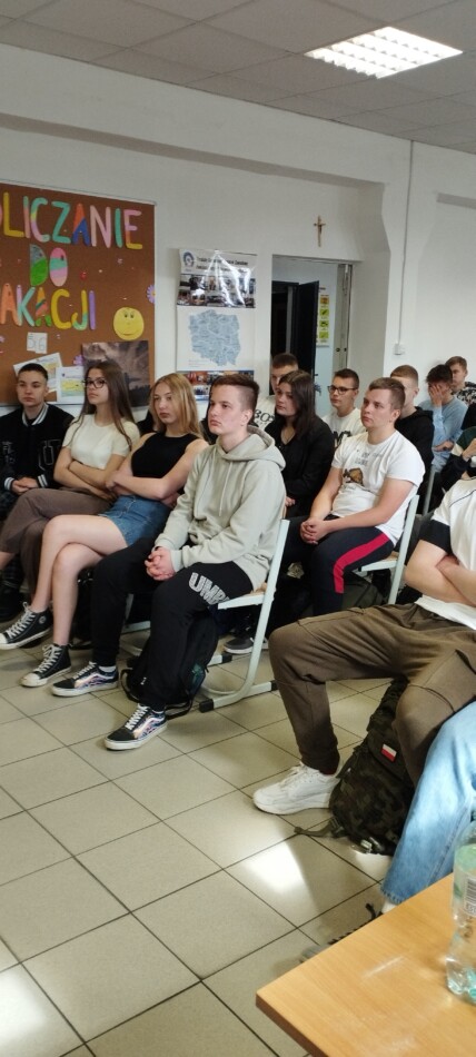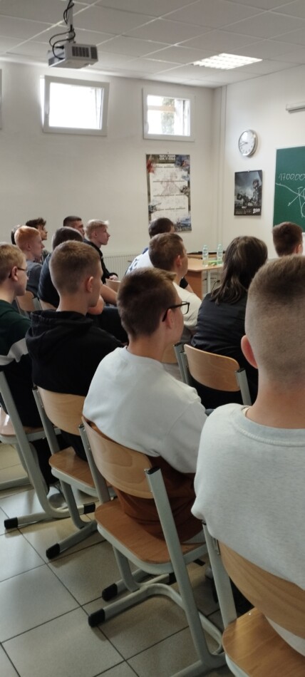 We wtorek, 24 maja, uczniowie klas pierwszych mieli okazję posłuchać wykładu emerytowanej nadkomisarz Elwiry Lelental na temat skutków prawnych zażywania środków niedozwolonych. To był bardzo ważny i potrzebny wykład, dający wiedzę o zagrożeniach czyhających na młodych ludzi we współczesnym świecie.