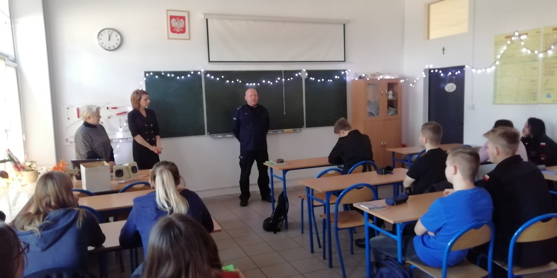 W dniu 5 grudnia w klasie III b o profilu policyjnym gościł Komendant Powiatowy Policji – mł. insp. Tomasz Hintz, który podziękował uczniom za wybór drogi kształcenia. Komendant opowiedział o procesie rekrutacji do służby, warunkach zatrudnienia, trudach i satysfakcji z pracy w Policji.