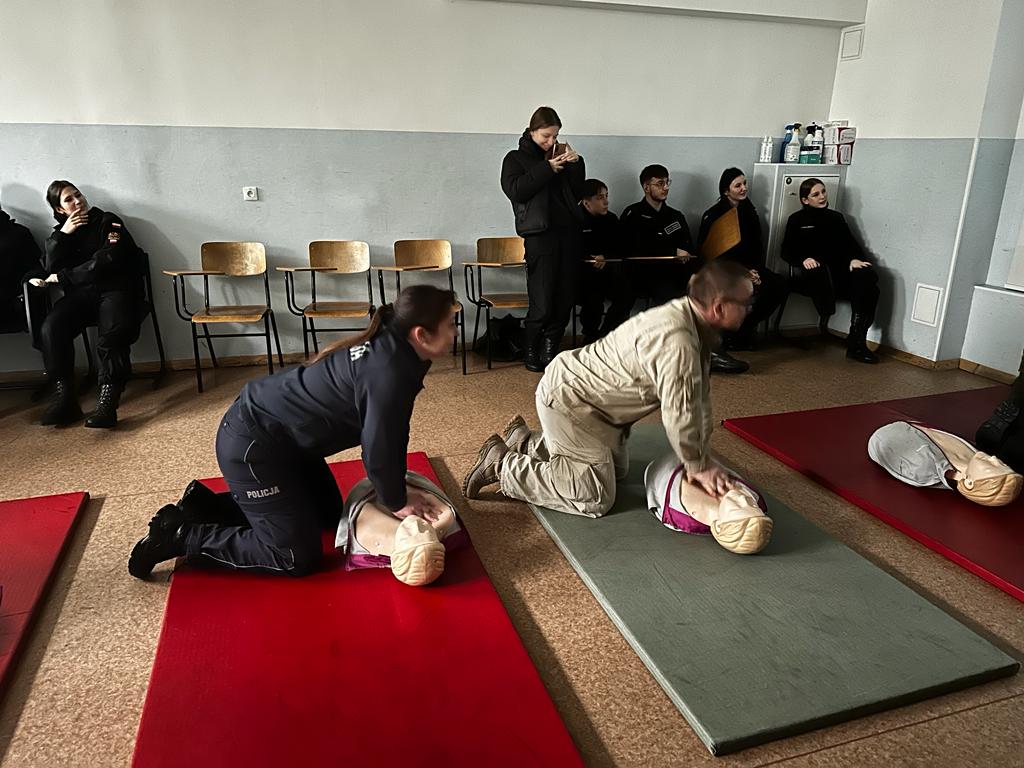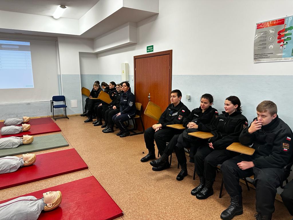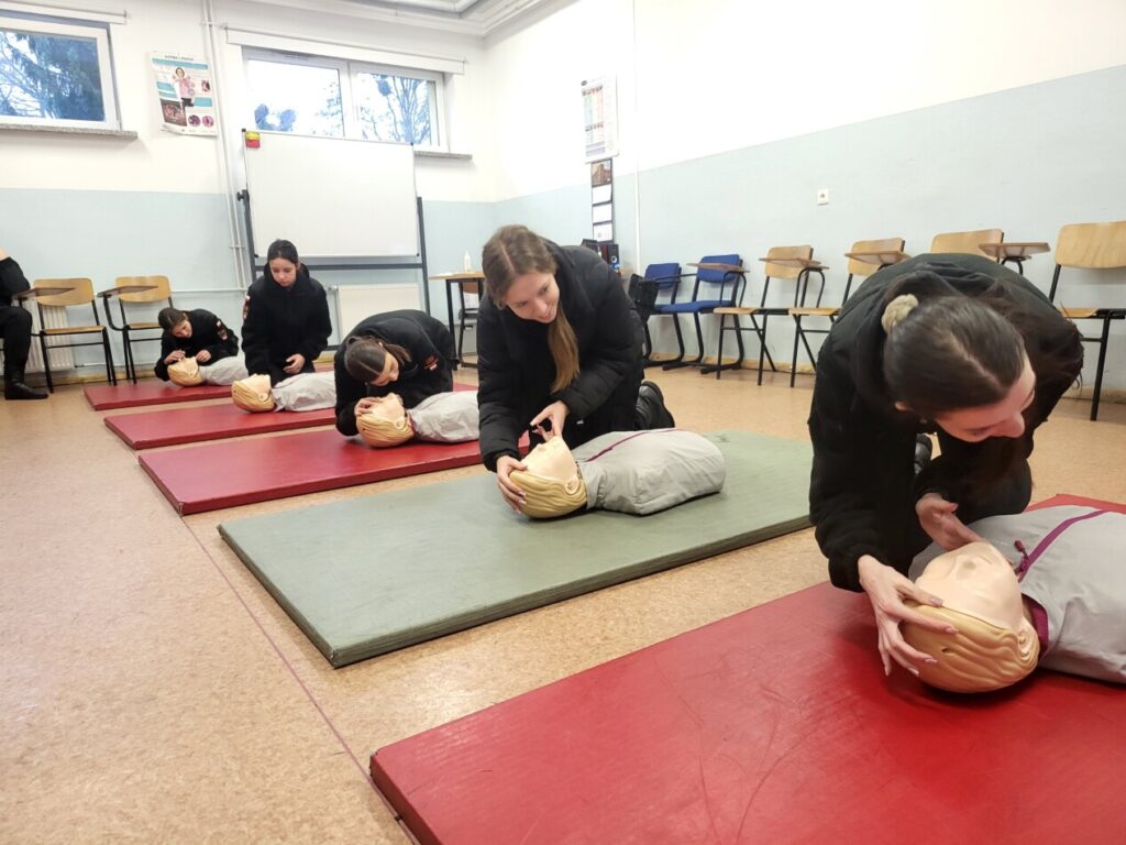 W trakcie pobytu młodzież uczestniczyła w zajęciach w zakresie udzielenia pierwszej pomocy przedmedycznej. Uczniowie uczyli się odpowiedniego zachowania w sytuacji udzielania pomocy osobie nieprzytomnej, sprawdzenia jej oddechu, a w przypadku stwierdzenia bezdechu, prawidłowego prowadzenia resuscytacji krążeniowo-oddechowej.