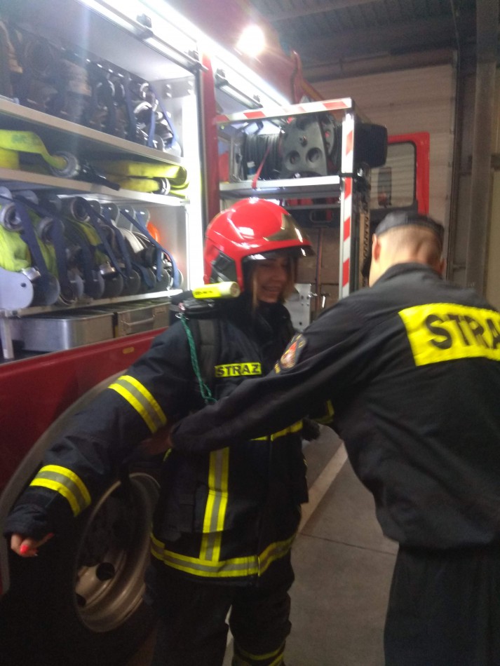 W dniu 9.10.2019r. uczniowie Szkoły Technicznej BZDZ w Chojnicach odwiedzili dwie Jednostki Ratowniczo – Gaśnicze Komendy Miejskiej Państwowej Straży Pożarnej w Gdyni. Pierwszą z nich była otwarta w tym roku JRG PSP nr 3 Gdynia Oksywie, w której uczniowie mieli możliwość zapoznania się ze strukturą i funkcjonowaniem jednostki ratowniczo – gaśniczej PSP. Po szkoleniu BHP uczniowie technikum zapoznali się ze specjalistycznym sprzętem strażackim i mieli możliwość jego użycia (pod stałym nadzorem strażaków-instruktorów). Drugą z odwiedzonych była Jednostka Ratowniczo – Gaśnicza nr 4 Gdynia Wielki Kack. W tej jednostce zorganizowano pokaz i warsztaty dla uczniów technikum. Uczniowie zapoznali się z nowoczesnym umundurowaniem strażaków, a po szkoleniu teoretycznym i BHP udano się na pobliski poligon. Na nim przeprowadzono ćwiczenia z zakresu gaszenia pożarów w budynkach. Pokazano kilka sposobów gaszenia pożarów wewnętrznych. Na pokazie użyto również najnowocześniejszy systemem do walki z pożarami „system Cobra”. Jego główna zaleta to możliwość prowadzenia działań gaśniczych bez konieczności wchodzenia do wnętrza płonącego budynku. Strażacy mogą podawać środek gaśniczy, pozostając na zewnątrz poza strefą bezpośredniego działania płomieni i czynników niebezpiecznych. Nowa technologia pozwala na szybkie i skuteczne, a co najważniejsze bezpieczne, zwalczanie pożarów wewnętrznych. Urządzenie wyposażone jest w generator mgły wodnej z funkcją zimnego cięcia wodą. Uczniowie mieli możliwość obsługi prądów gaśniczych, pracy w aparatach ochrony dróg oddechowych i pracy z kamerą termowizyjną.