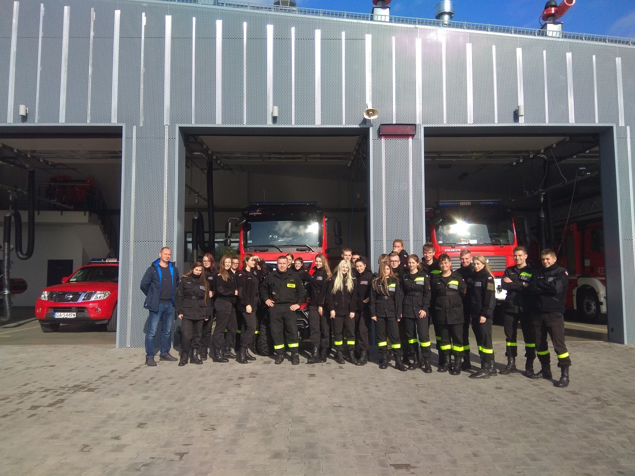 W dniu 9.10.2019r. uczniowie Szkoły Technicznej BZDZ w Chojnicach odwiedzili dwie Jednostki Ratowniczo – Gaśnicze Komendy Miejskiej Państwowej Straży Pożarnej w Gdyni. Pierwszą z nich była otwarta w tym roku JRG PSP nr 3 Gdynia Oksywie, w której uczniowie mieli możliwość zapoznania się ze strukturą i funkcjonowaniem jednostki ratowniczo – gaśniczej PSP. Po szkoleniu BHP uczniowie technikum zapoznali się ze specjalistycznym sprzętem strażackim i mieli możliwość jego użycia (pod stałym nadzorem strażaków-instruktorów). Drugą z odwiedzonych była Jednostka Ratowniczo – Gaśnicza nr 4 Gdynia Wielki Kack. W tej jednostce zorganizowano pokaz i warsztaty dla uczniów technikum. Uczniowie zapoznali się z nowoczesnym umundurowaniem strażaków, a po szkoleniu teoretycznym i BHP udano się na pobliski poligon. Na nim przeprowadzono ćwiczenia z zakresu gaszenia pożarów w budynkach. Pokazano kilka sposobów gaszenia pożarów wewnętrznych. Na pokazie użyto również najnowocześniejszy systemem do walki z pożarami „system Cobra”. Jego główna zaleta to możliwość prowadzenia działań gaśniczych bez konieczności wchodzenia do wnętrza płonącego budynku. Strażacy mogą podawać środek gaśniczy, pozostając na zewnątrz poza strefą bezpośredniego działania płomieni i czynników niebezpiecznych. Nowa technologia pozwala na szybkie i skuteczne, a co najważniejsze bezpieczne, zwalczanie pożarów wewnętrznych. Urządzenie wyposażone jest w generator mgły wodnej z funkcją zimnego cięcia wodą. Uczniowie mieli możliwość obsługi prądów gaśniczych, pracy w aparatach ochrony dróg oddechowych i pracy z kamerą termowizyjną.