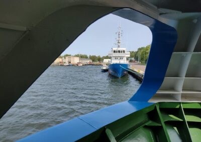 Morski Oddział Straży Granicznej w Gdańsku strzeże całej naszej morskiej granicy, wyróżnia się jednak służbą na morzu. Do właściwej ochrony naszych wód terytorialnych służą okręty i poduszkowce. My dostąpiliśmy niesamowitego wyróżnienia – mogliśmy zwiedzić najnowszy okręt Straży Granicznej, będący w służbie około 1,5 roku. Jest to wielozadaniowa, pełnomorska jednostka patrolowa OPV (offshore patrol vessel) najnowocześniejszy okręt w naszych służbach, numer burtowy SG-301. Cały okręt robi niesamowite wrażenie – wszystkie systemy skomputeryzowane, sterowanie jednostką odbywa się za pomocą joysticków (brak koła sterowego), nowoczesny napęd, czystość i cisza. Jest tak czysto, że w maszynowni mechanicy mogą pracować w białych rękawiczkach. Oczywiście tak nie pracują.
