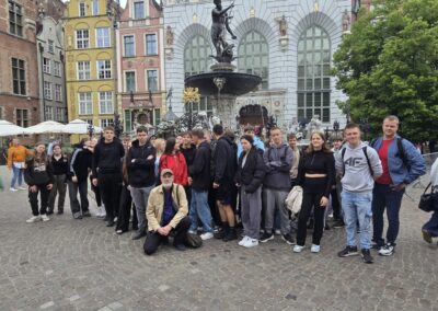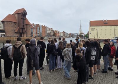 W dniu 30.05 2025r czterdzieścioro kadetów naszej szkoły wzięło udział w wycieczce do Narodowego Muzeum Morskiego w Gdańsku. Uczniowie zwiedzili dwa obiekty tego muzeum. W słynnym Żurawiu Gdańskim zwiedziliśmy ekspozycję , która przeniosła nas w czasie do gdańskiego portu w XVI – XVII , który w tym okresie przeżywał swoje najlepsze dni. Poznaliśmy tajniki nawigacji, techniki budowy statków ,działanie kantorów bankowych i życie codzienne portu. Bardzo interesujący był kołowy mechanizm dźwigowy unikatowy obecnie zabytek tego rodzaju u Europie. W drugim obiekcie muzeum – Ośrodku Kultury Morskiej obejrzeliśmy dwie wystawy ,pierwszą z dziedziny etnologii morskiej Łodzie świata gdzie można zobaczyć w jednym miejscu przekrój łodzi od weneckiej gondoli aż po dalekowschodnie plecione łodzie z Wietnamu ! Druga interaktywna wystawa poświęcona Farmom wiatrowym na Bałtyku i wykorzystaniu energii wiatrowej uświadomiła nam jakie znaczenie już teraz ma wykorzystanie siły wiatru w produkcji energii elektrycznej i rosnącą rolę energetyki morskiej. Potem już tylko posiłek i powrót do Chojnic z mocnym postanowieniem powrotu i obejrzenia pozostałych trzech obiektów gdańskiego muzeum, bo jeden dzień to zbyt mało aby zwiedzić wszystko.