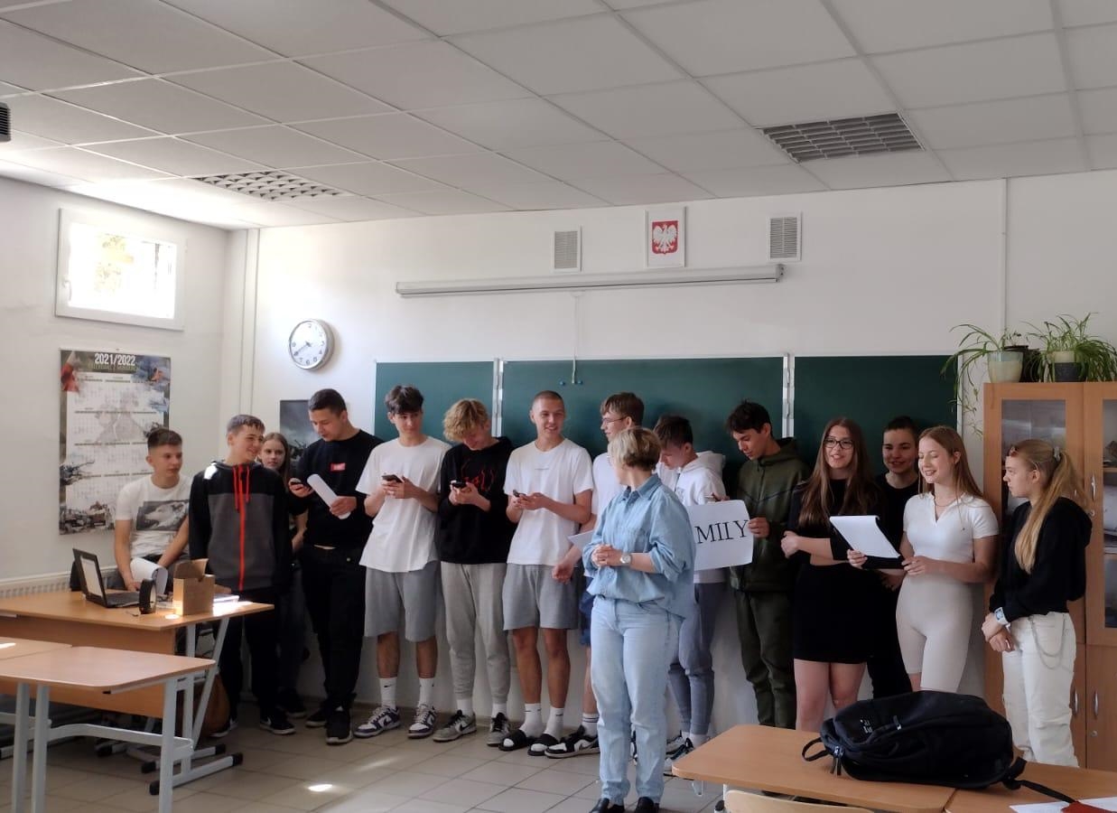 Klasa I a wraz z nauczycielką j. angielskiego, Panią Moniką Tomalką, przygotowali krótkie wystąpienie. Ucniowie śpiewali piosenki po angielsku. Jak stwierdziła Pani Monika, wszyscy chcieli stworzyć z młodzieżą wspólny projekt, który być może, w przyszłości przerodzi się w cykliczne spotkania :-). Jedno jest pewne, wszyscy bawili się bardzo dobrze!