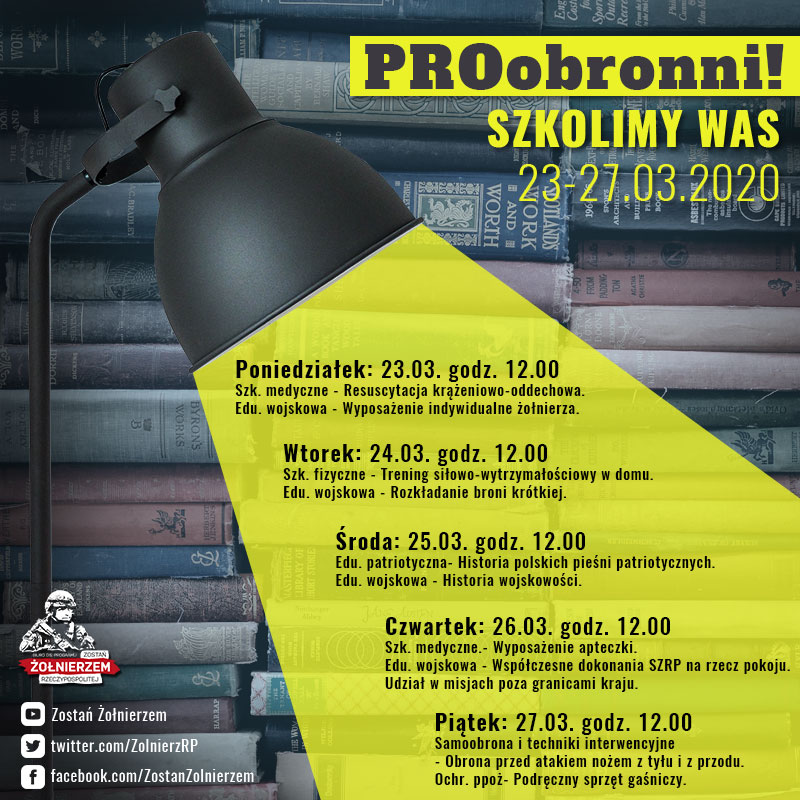 Każdego dnia od poniedziałku do piątku publikowane będą materiały edukacyjne poświęcone m.in. edukacji wojskowej, sprawności fizycznej, szkoleniu medycznemu, które można realizować samodzielnie w domu.