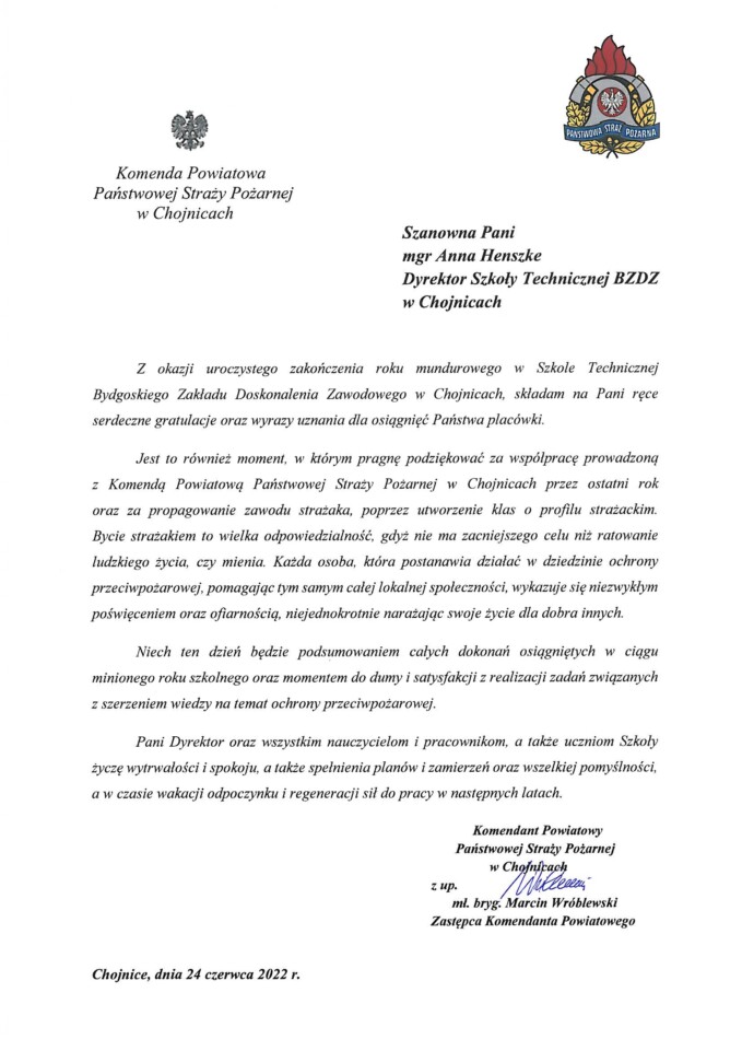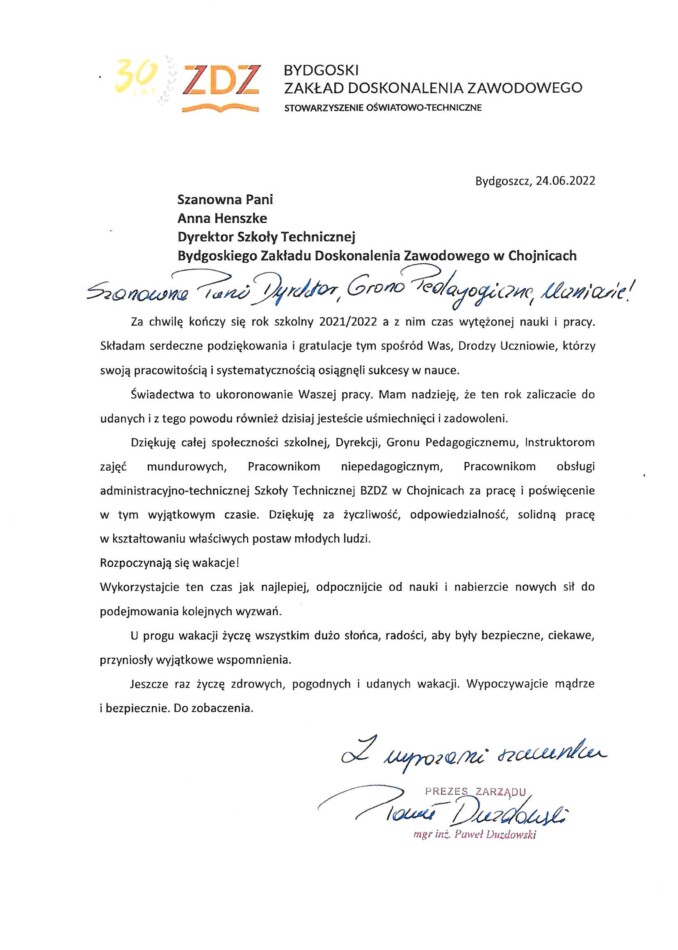 Życzenia z okazji zakończenia roku szkolnego 2021/2022