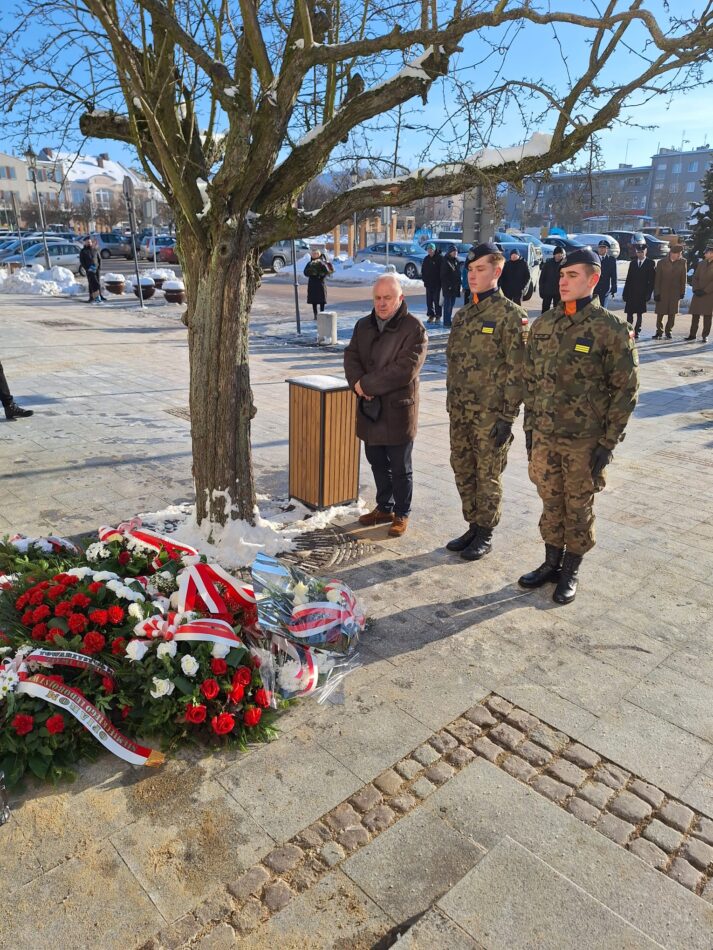 W rocznicę nocy z 16 na 17 stycznia 1945 r., podczas której zamordowano polskich patriotów delegacja naszej szkoły złożyła kwiaty pod tablicą na ratuszu, upamiętniającą te tragiczne wydarzenia.