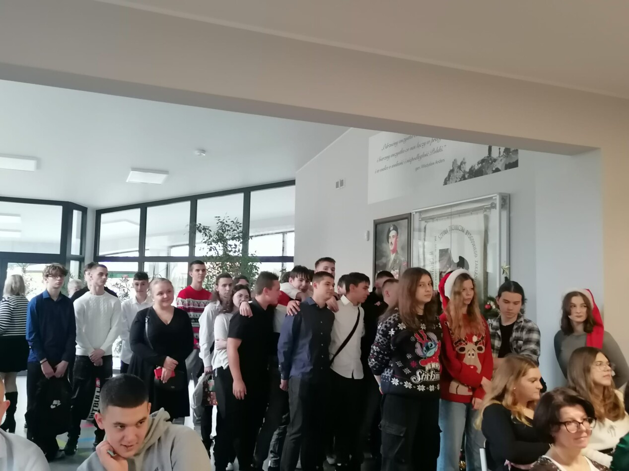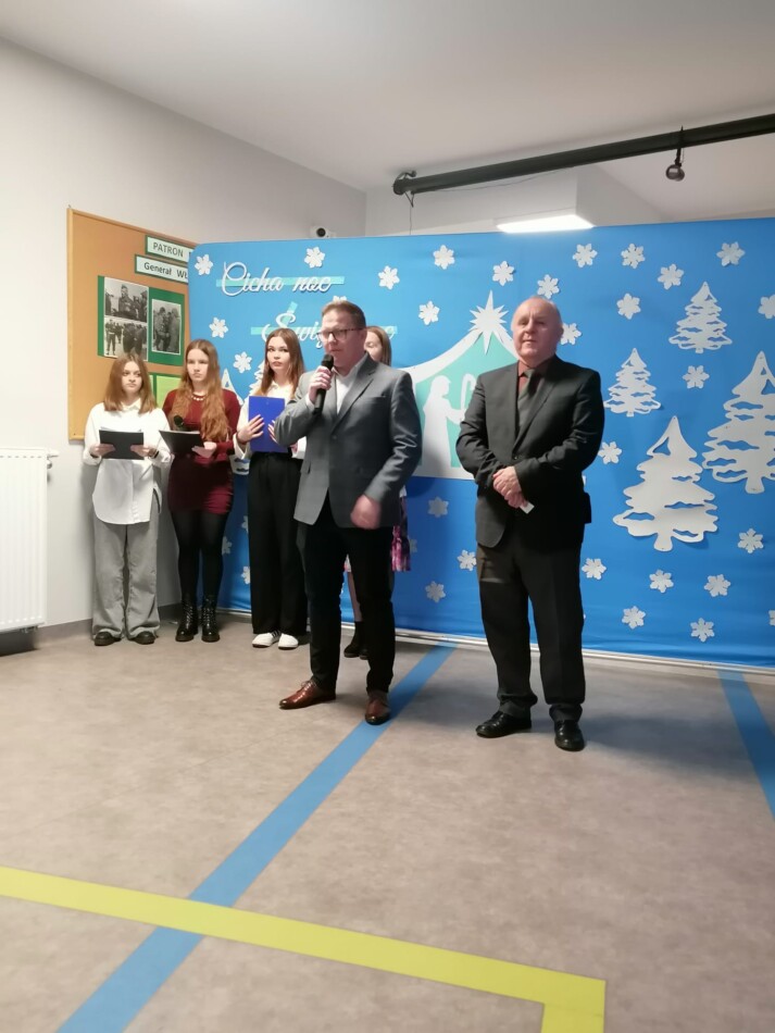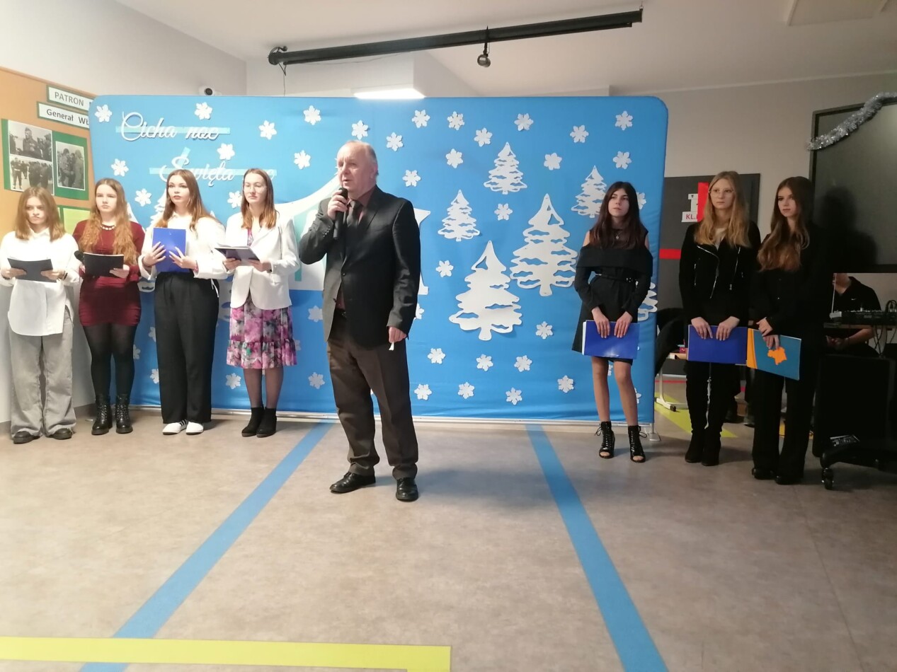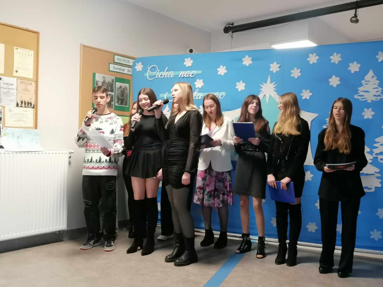 W ostatni dzień przed przerwą świąteczną uczniowie, pod kierunkiem p. Hanny Długołęckiej i p. Zbigniewa Sugajskiego przedstawili świąteczny program artystyczny, który wprowadził wszystkich w klimat Bożego Narodzenia. Była pięknie i nastrojowo.