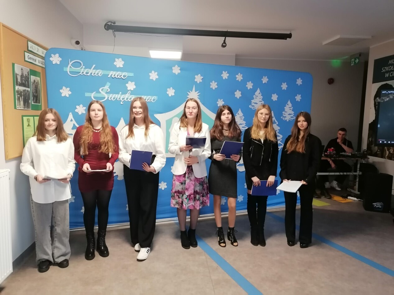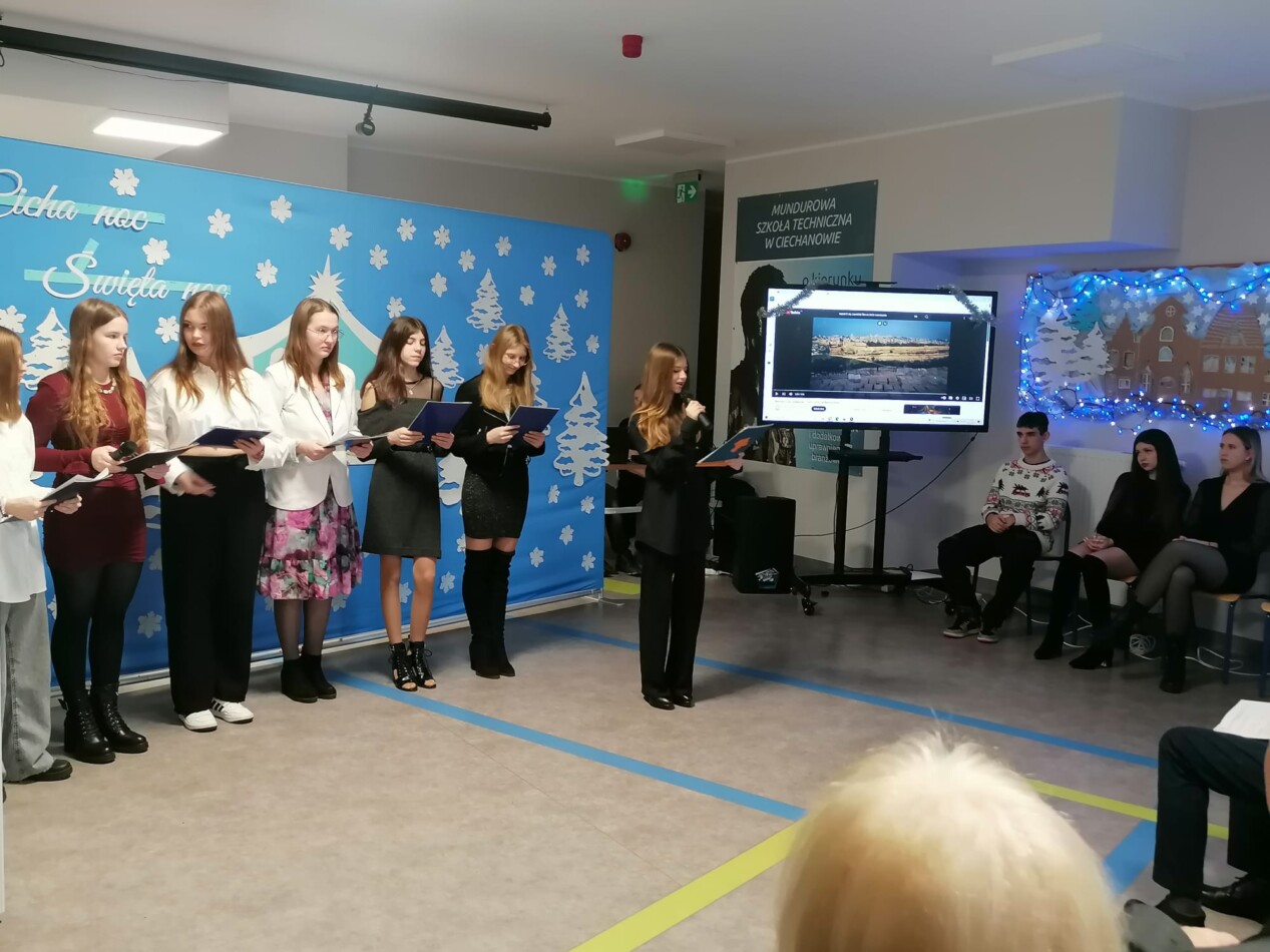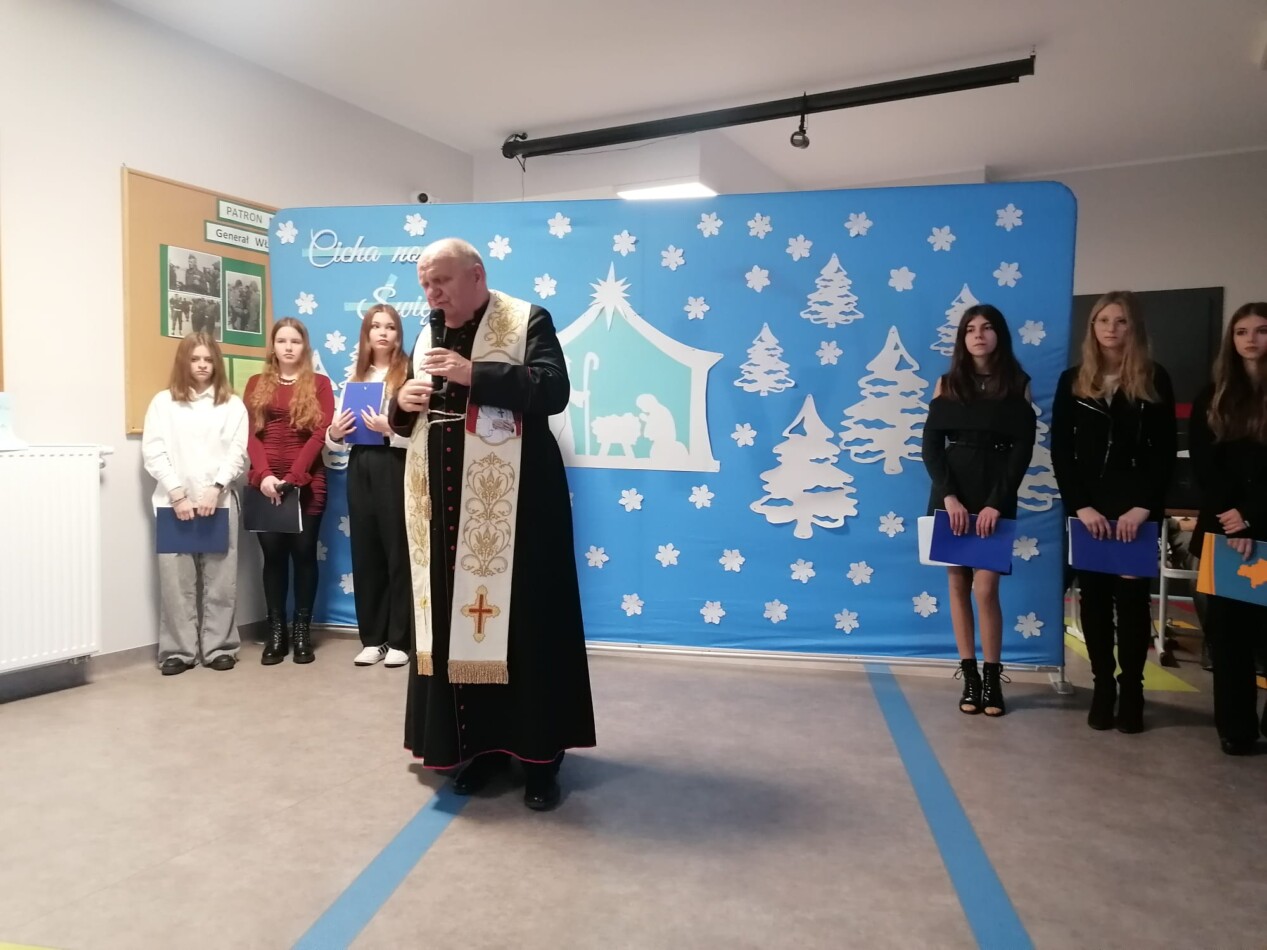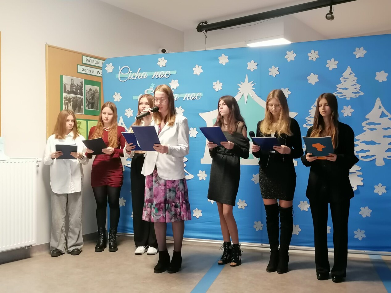 W ostatni dzień przed przerwą świąteczną uczniowie, pod kierunkiem p. Hanny Długołęckiej i p. Zbigniewa Sugajskiego przedstawili świąteczny program artystyczny, który wprowadził wszystkich w klimat Bożego Narodzenia. Była pięknie i nastrojowo.
