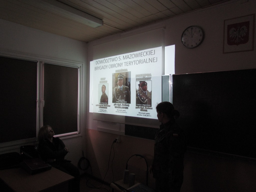 Spotkanie uczniów klas mundurowych z przedstawicielami 5 Mazowieckiej Brygady Wojsk Obrony Terytorialnej oraz Wojskowej Komendy Uzupełnień w Ciechanowie.