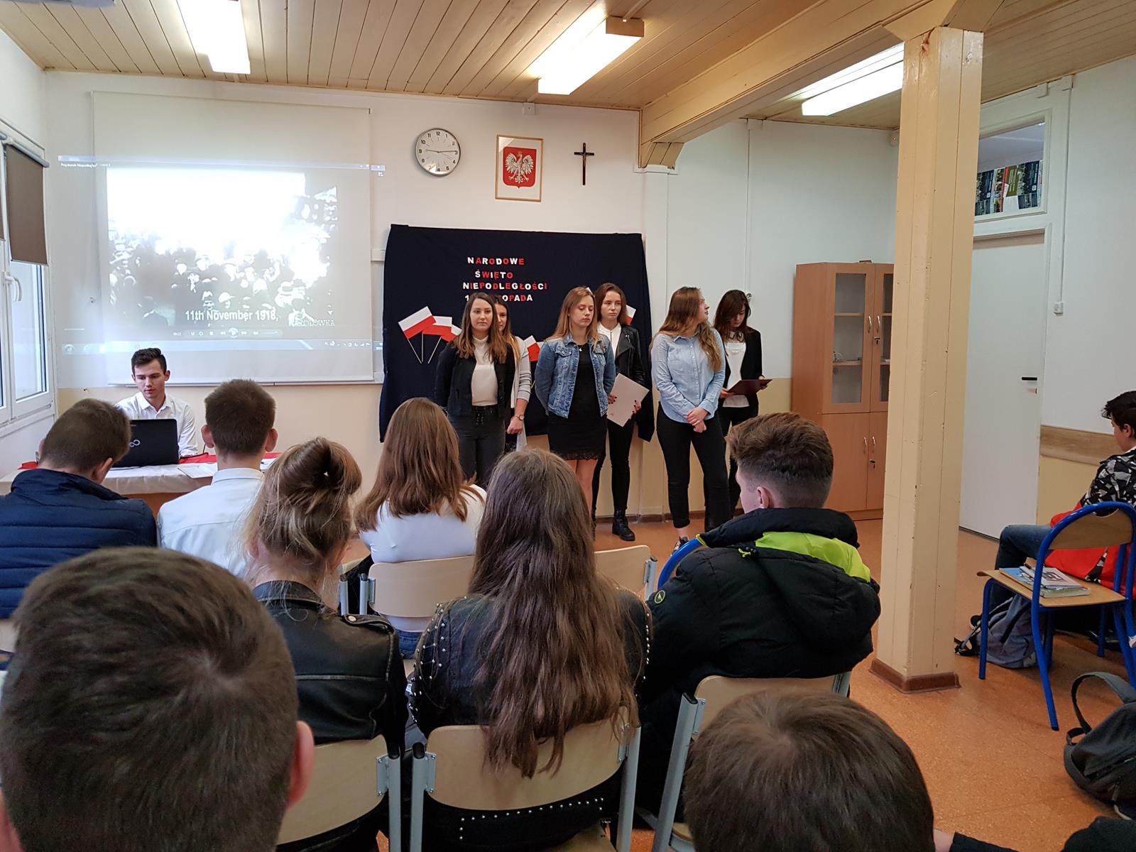12 listopada 2019 r. odbył się w naszej szkole uroczysty apel z okazji obchodów 101 rocznicy odzyskania niepodległości przez Polskę. Uczennice klasy 3A przybliżyły zebranym walkę Polaków o niepodległość w XIX w. i wydarzenia, które doprowadziły do odbudowy Polski w 1918 r.