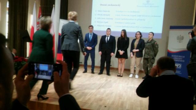 5 grudnia 2019 r. uczeń naszej szkoły Patryk Skorupski odebrał z rąk pani wicekurator Doroty Skrzypek – stypendium Prezesa Rady Ministrów.