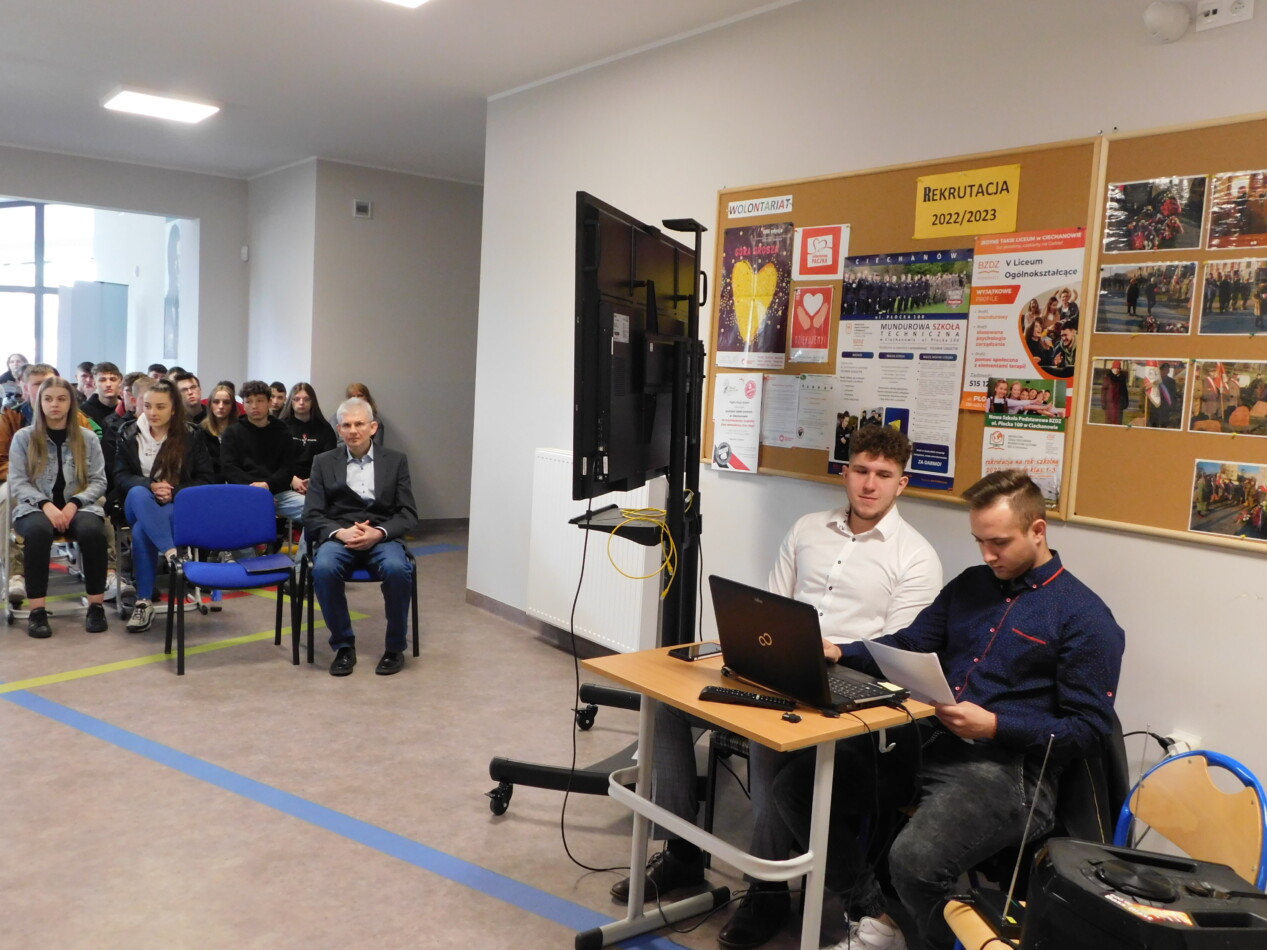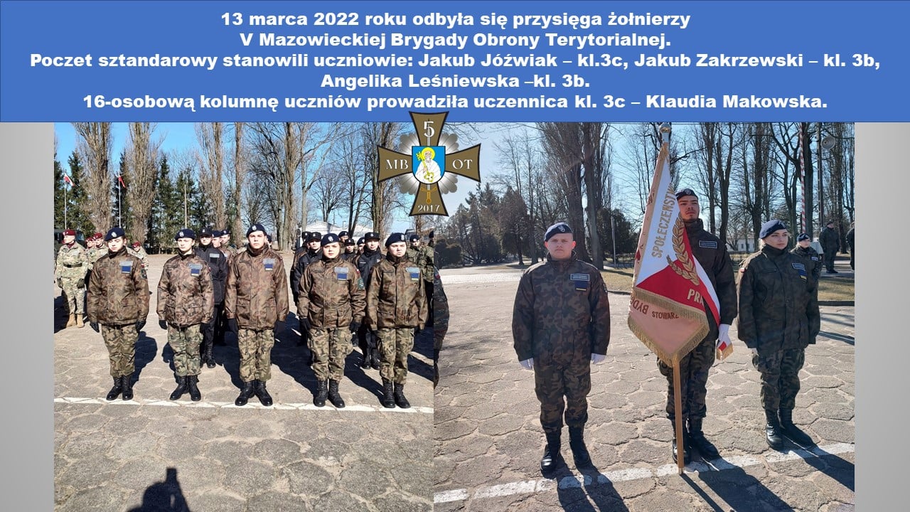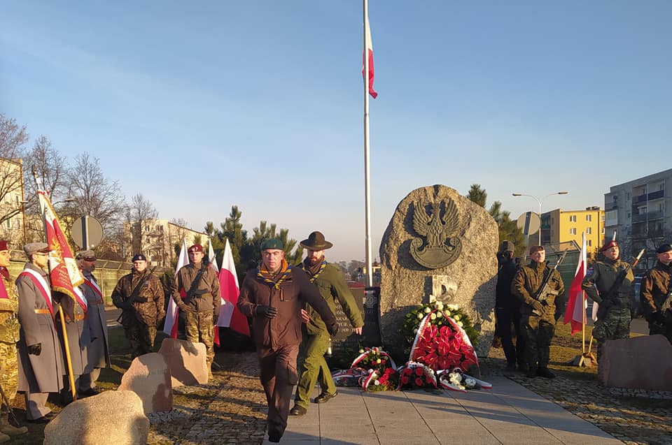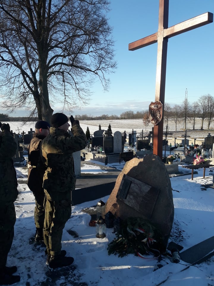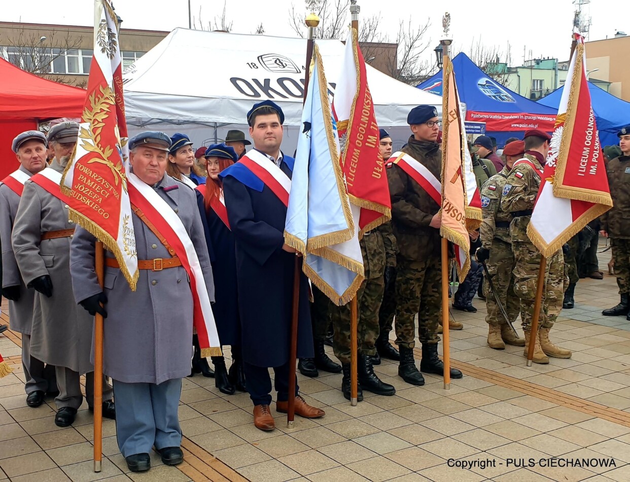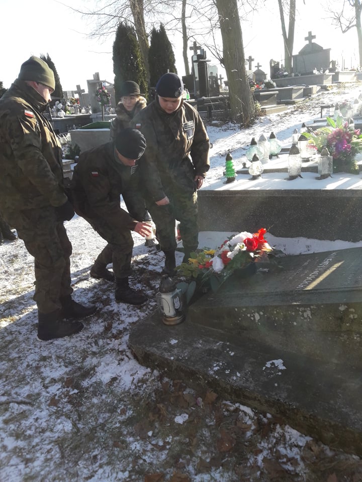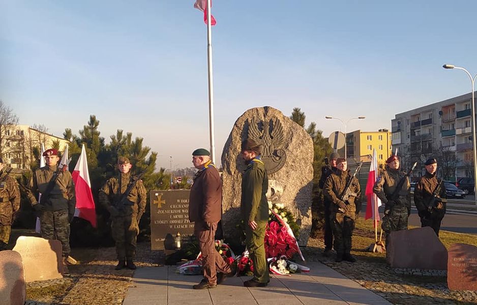 Uroczystości zorganizowała V Mazowiecka Brygada Obrony Terytorialnej, z którą od lat współpracujemy. Nasza szkoła wystawiła posterunek honorowy pod pomnikiem, będącym upamiętnieniem i hołdem dla żołnierzy Wojska Polskiego i Armii Krajowej, pochodzącym z Ziemi Ciechanowskiej. Wartę pełnili: st. kadet Karol Kwiatkowski z klasy 1a, st. kadet Jakub Nazarenko z kl. 2a. Podczas krótkiej uroczystości władze miasta, organizacje pozarządowe, delegacje szkół złożyły kwiaty i zapaliły znicze. St. kadet Julia Ignatowska wraz z panią Dyrektor Bogumiłą Wejs miały zaszczyt złożyć wiązankę patriotyczną w dowód szacunku i pamięci dla poległych. Pomnik ten jest miejscem szczególnym. Niektórzy codziennie go mijają. Zwróćmy uwagę na napis widniejący na głównej tablicy: „W hołdzie Ciechanowianom – żołnierzom Armii Krajowej, którzy polegli za Ojczyznę w latach 1939-1956 – od społeczeństwa ziemi ciechanowskiej i żyjących weteranów Armii Krajowej”.