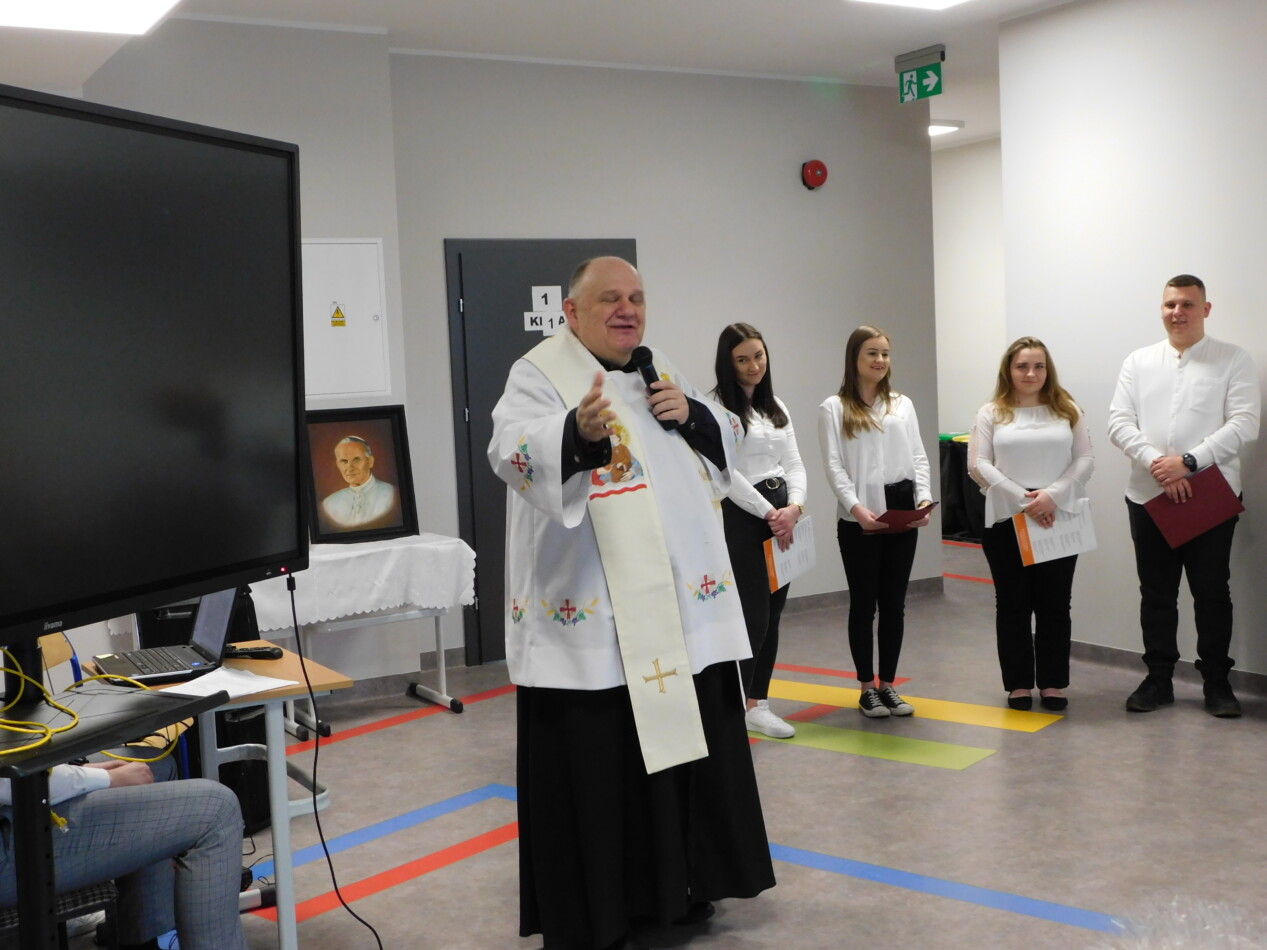 2 kwietnia – kolejna rocznica śmierci Papieża Jana Pawła II. Dziś odbył się uroczysty apel z tej okazji. Uczniowie klas czwartych pod czułą opieką p. Ewy Goś oraz p. Zbigniewa Sugajskiego zaprezentowali przepiękny, wzruszający program artystyczny, okraszony słowem i muzyką. Nie zabrakło w nim faktów i wspomnień o Papieżu, a także wokalnych występów Mai Fijałkowskiej, którą wspomagali uczniowie i kadra pedagogiczna. Spotkanie uświetnił gość – ks. dziekan parafii Matki Boskiej Fatimskiej w Ciechanowie – Jan Jóźwiak.