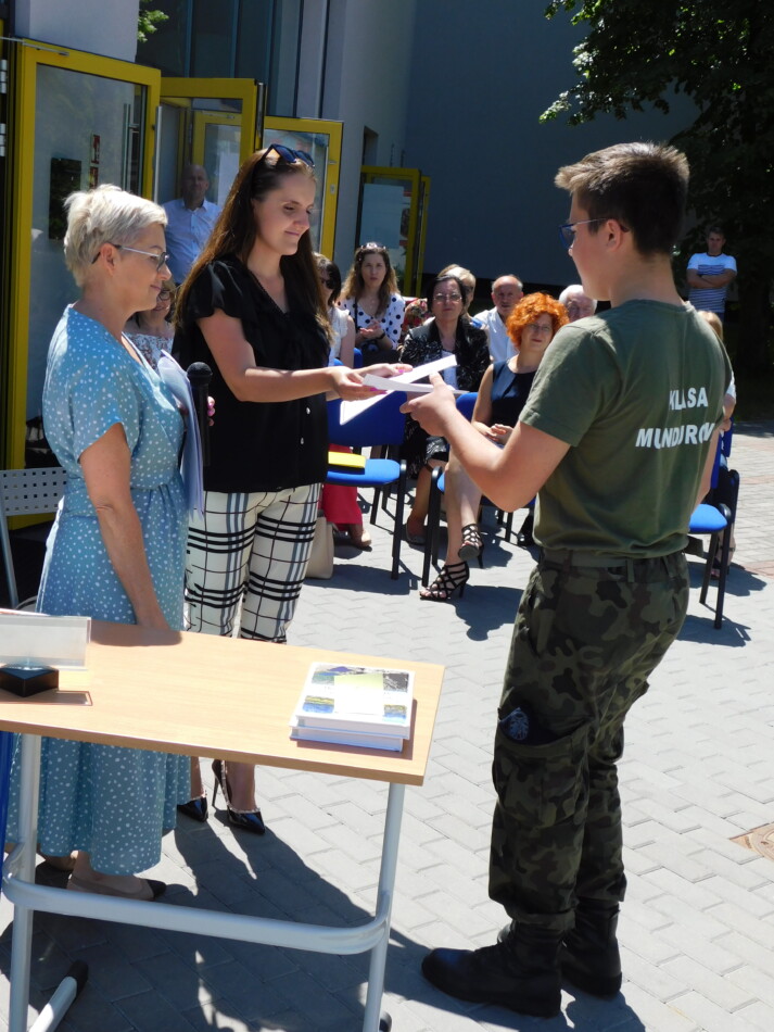 W dniu 24 czerwca oficjalnie zakończyliśmy rok szkolny 2021/2022. Podczas uroczystości zakończenia roku szkolnego dyrektor szkoły pani Bogumiła Wejs wraz z wychowawcami wręczyła świadectwa uczniom z najwyższymi średnimi oraz nagrody dla wyróżniających się kadetów. Odczytała list okolicznościowy Prezesa BZDZ Pana Pawła Duzdowskiego, zawierający m.in. gratulacje dla Uczniów, Nauczycieli i Pracowników Szkoły, podziękowania oraz życzenia przyjemnych i bezpiecznych wakacji.
