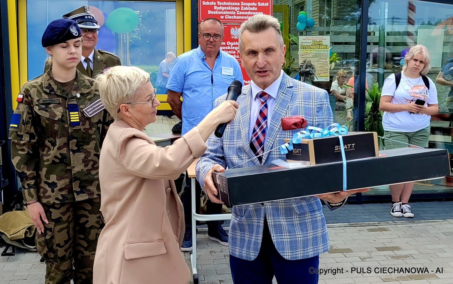 Ze strony organu prowadzącego szkołę głos zabrał Prezes Zarządu Bydgoskiego Zakładu Doskonalenia Zawodowego Stowarzyszenia Oświatowo-Technicznego, Paweł Duzdowski, który poinformował, że dzięki dopełnieniu wszelkich procedur szkoła otrzymała zgodę Ministerstwa Obrony Narodowej na utworzenie od 1 września 2022 Oddziału Przygotowania Wojskowego oraz przekazał – na ręce Pani Dyrektor Bogumiły Wejs – prezent w postaci laserowego trenażera strzeleckiego.