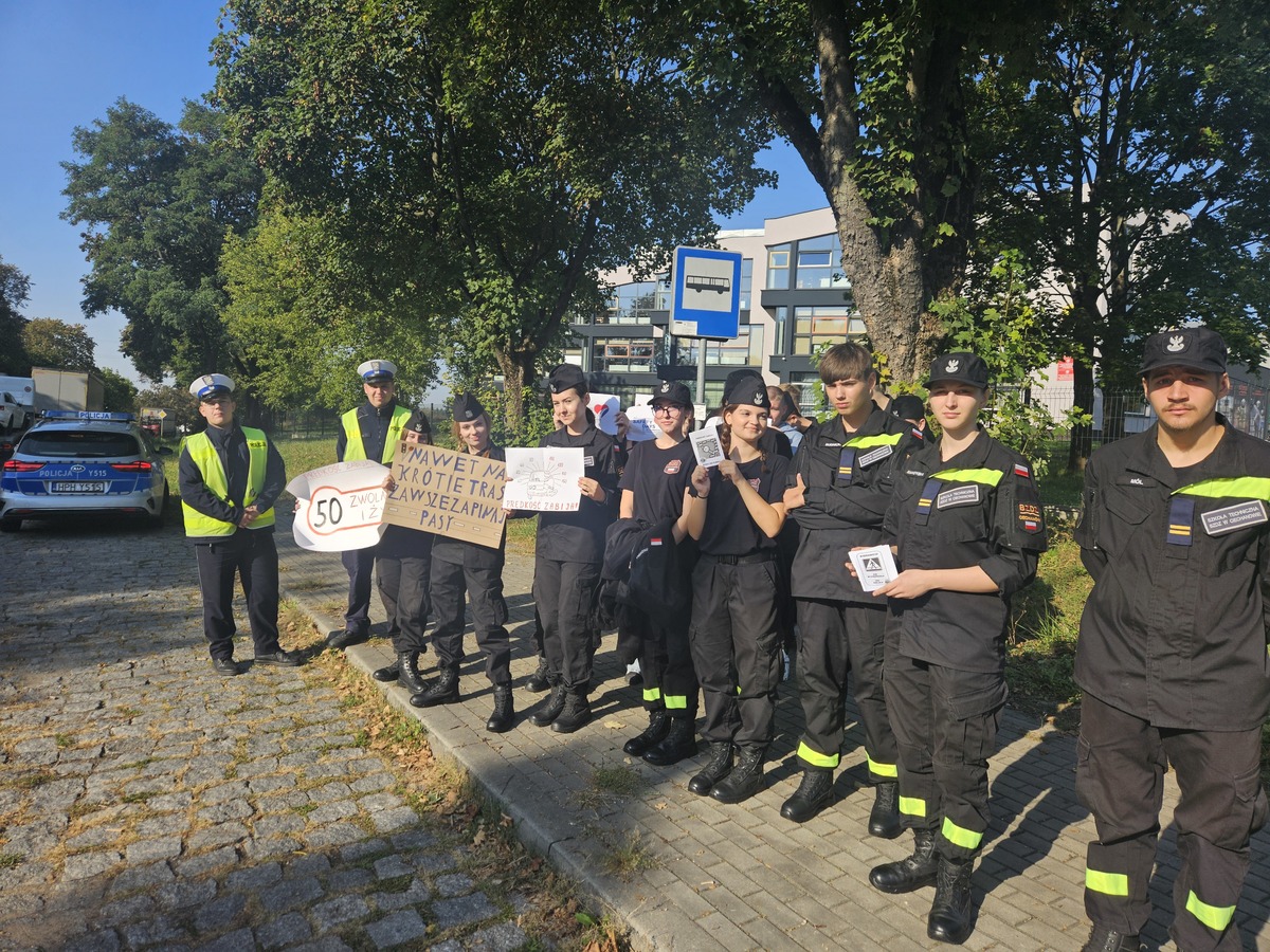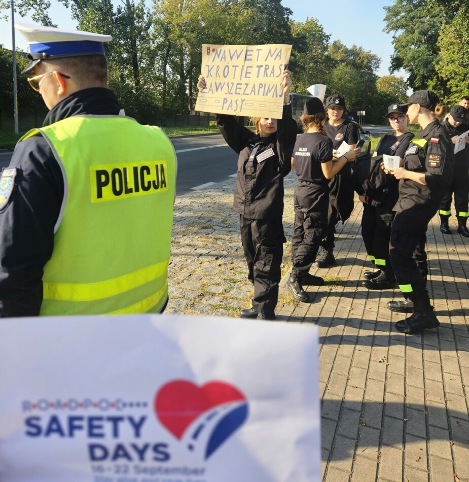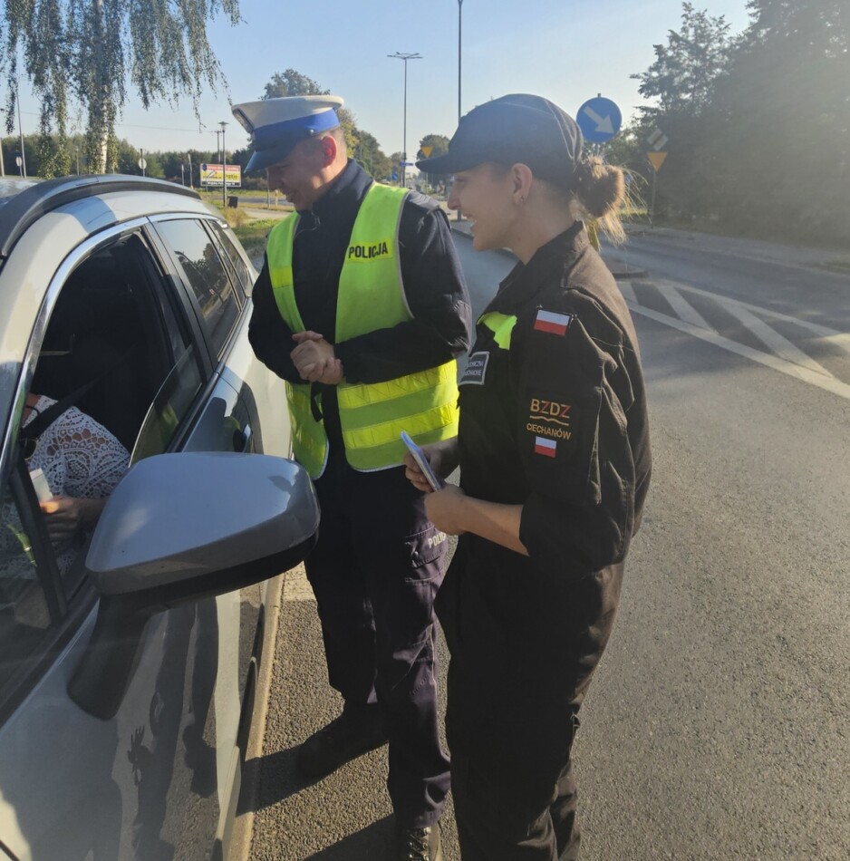 W ramach Dni Bezpieczeństwa Ruchu Drogowego ciechanowscy policjanci przeprowadzili akcję profilaktyczną wspólnie z uczniami z klasy 2d naszego Technikum. Akcja miała na celu promowanie bezpiecznych zachowań na drogach.