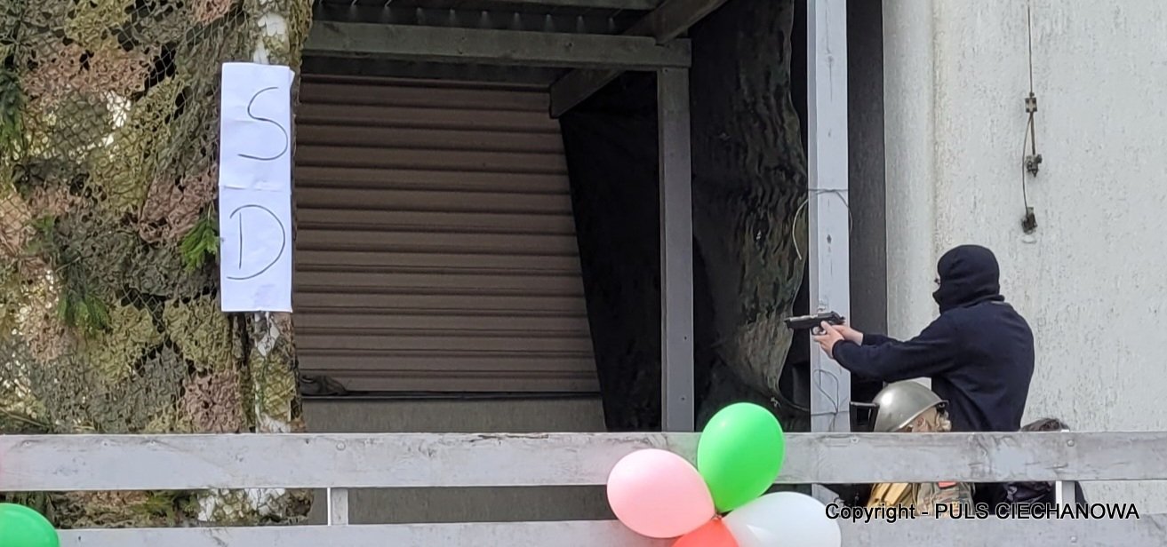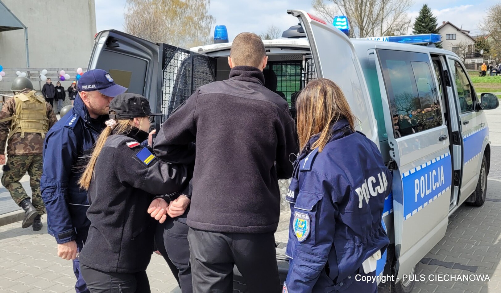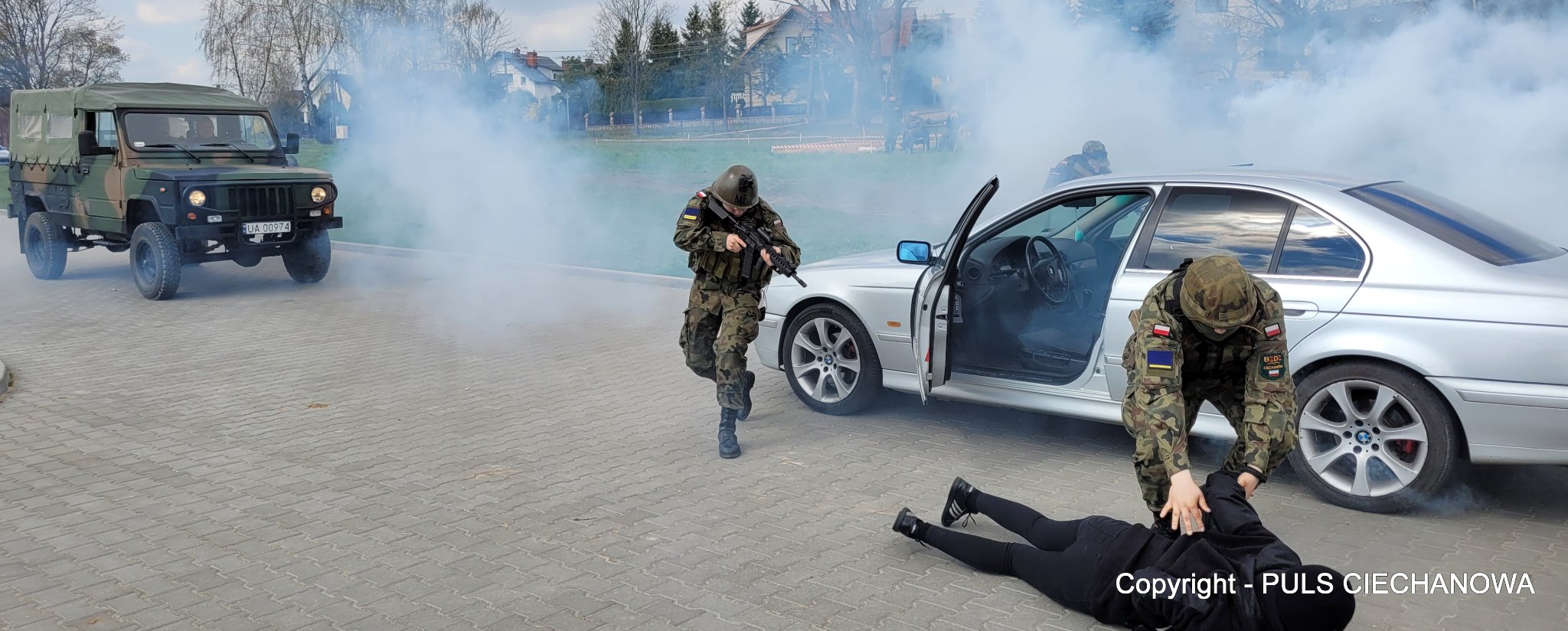 Szczególnie widowiskowo wyglądały pokazy przygotowane przez uczniów klas mundurowych. Akcja odbicia zakładnika, ujęcie terrorysty, przeszukanie auta czy przekazanie zatrzymanego w ręce Policji – wyglądały niemalże jak z filmów akcji. Świetnie zaprezentowali się uczniowie fakultetów: wojskowego pod kierunkiem sierż. Pauliny Królikowskiej (2. Ośrodek Radioelektroniczny w Przasnyszu) oraz policyjnego pod kierunkiem mł. asp. Magdy Zarembskiej (Komenda Powiatowa Policji w Ciechanowie).