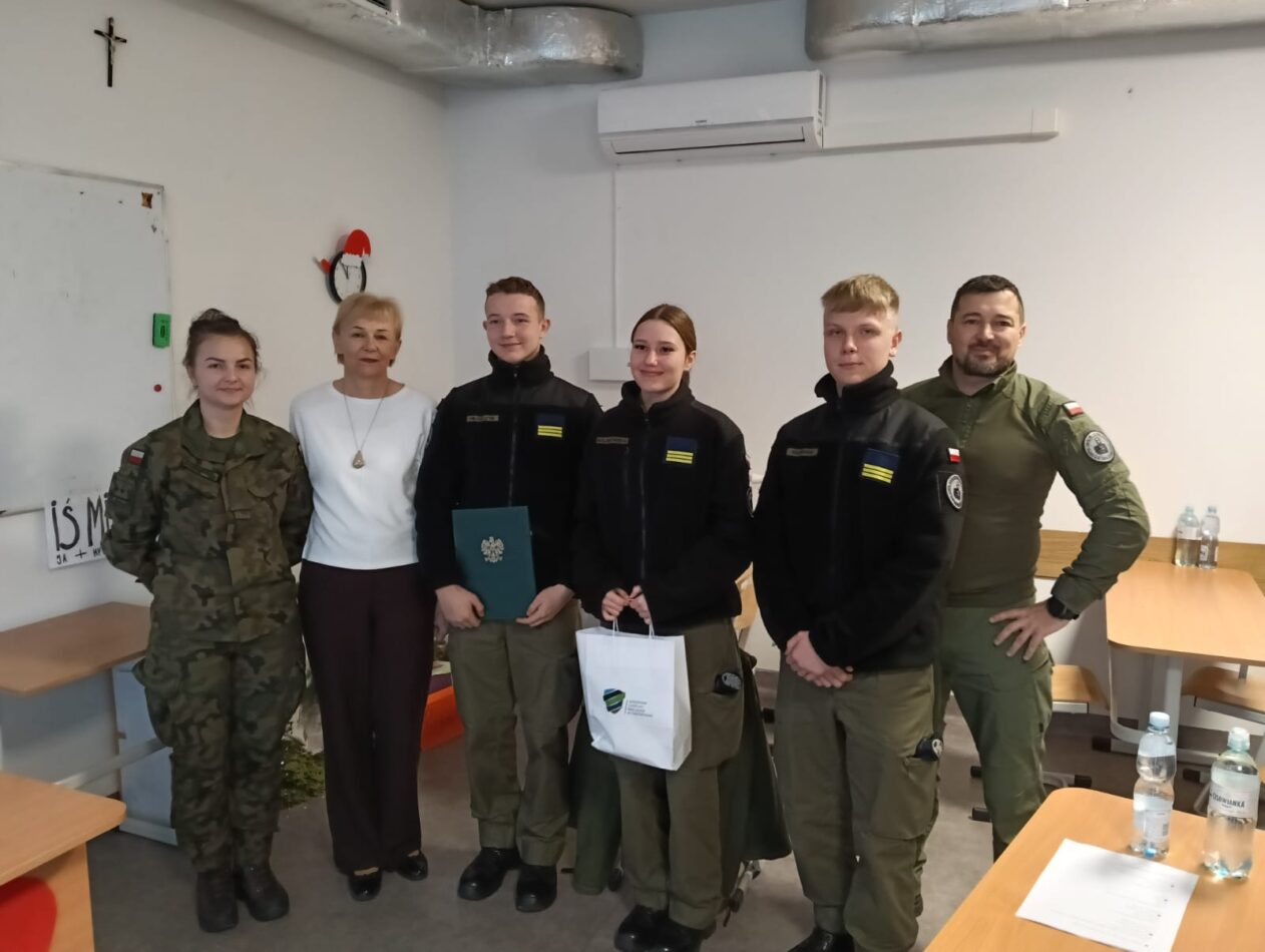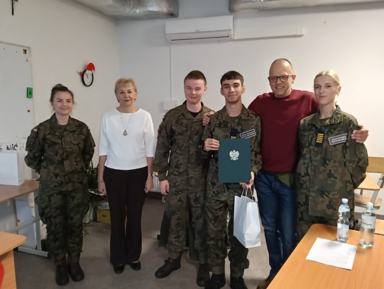 Kolejna edycja organizowanego przez WCR konkursu „Ekstraklasa wojskowa” za nam. Tym razem Szkoła Techniczna wystąpiła w roli gospodarza konkursu. Nasza drużyna w składzie: Marta Rudzińska, Karol Kwiatkowski i Piotr Czubkowski uplasowała się na drugim miejscu. Zwyciężyli kadeci z Zespołu Szkół nr 1 im. gen. Józefa Bema.