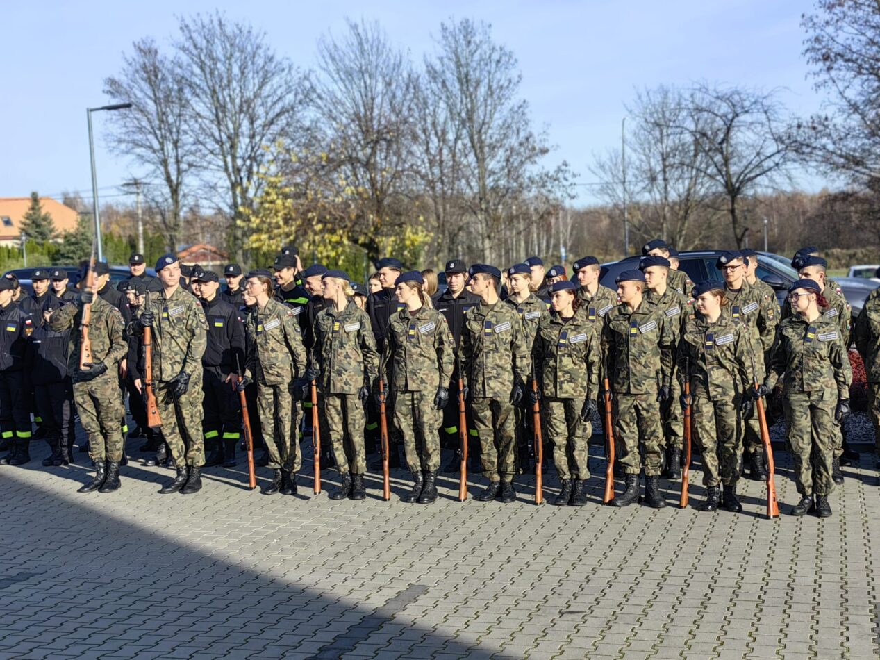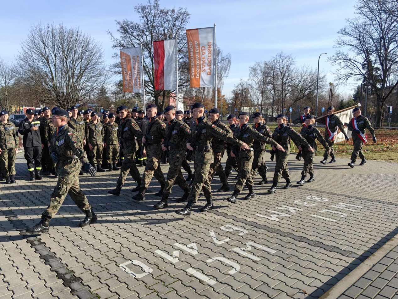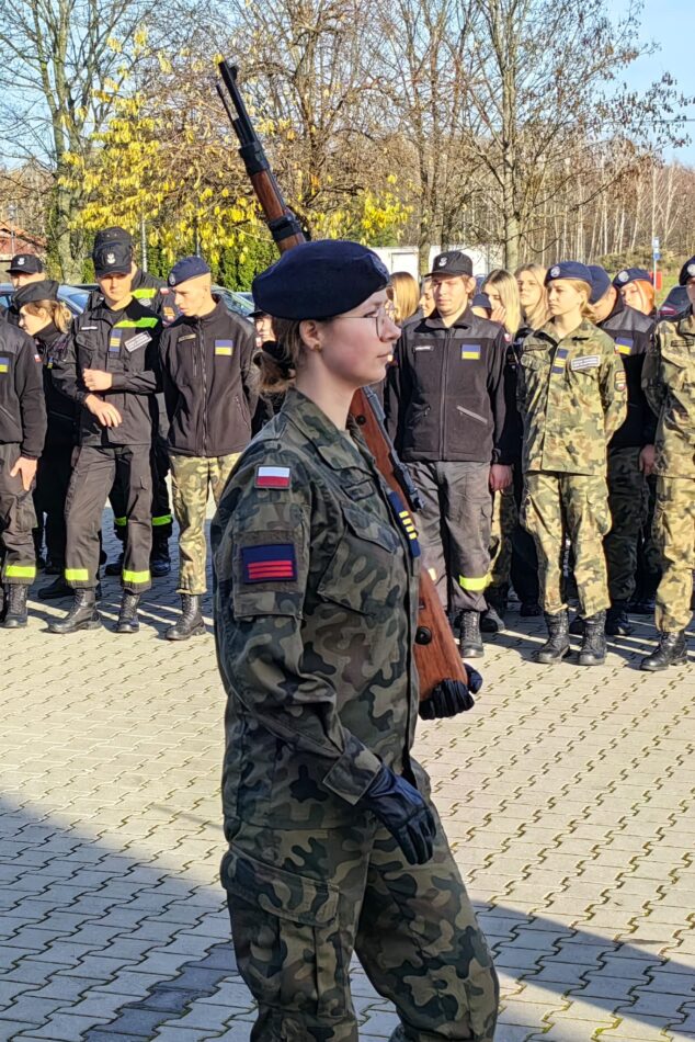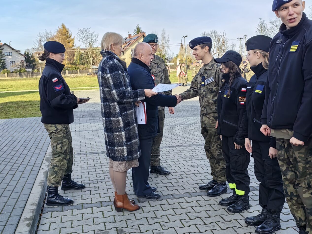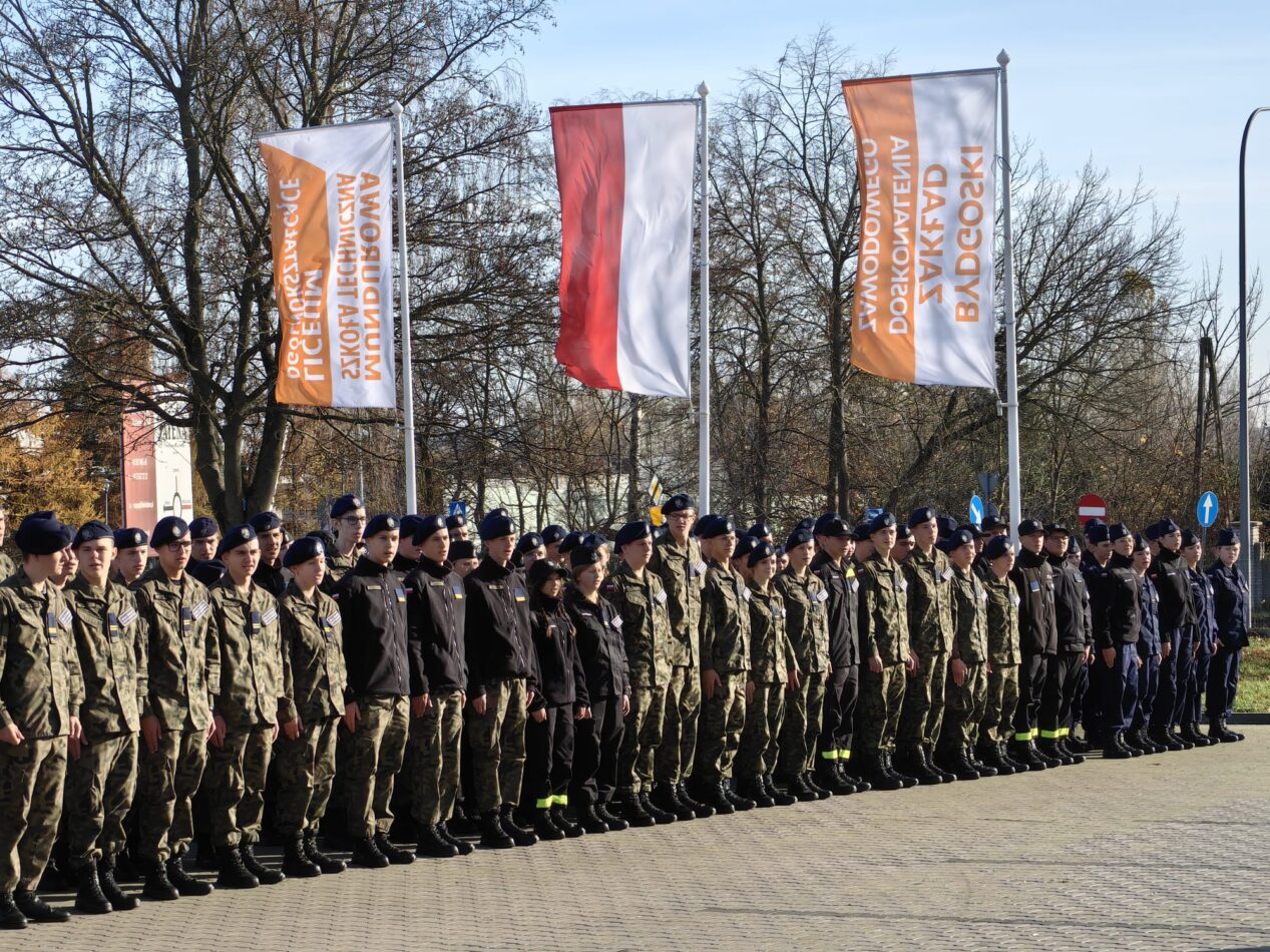 Piękna, jesienna pogoda towarzyszyła szkolnym obchodom Święta Niepodległości, które odbyły się wczoraj. Podczas uroczystości wręczone zostały awanse . Odbył się też pokaz musztry paradnej a na zakończenie defilada.