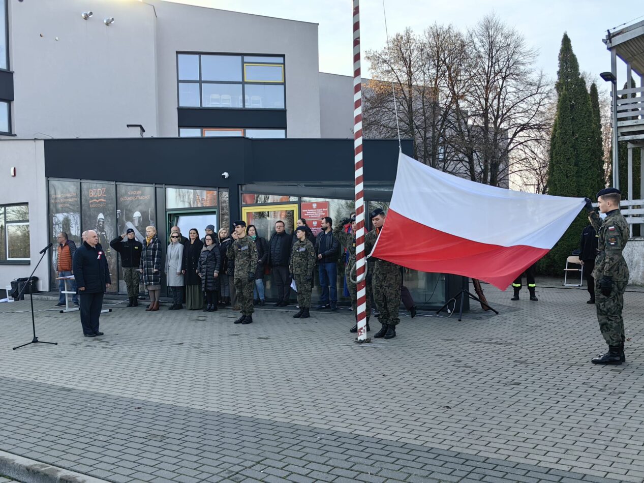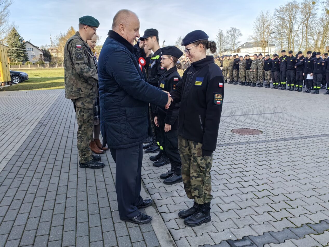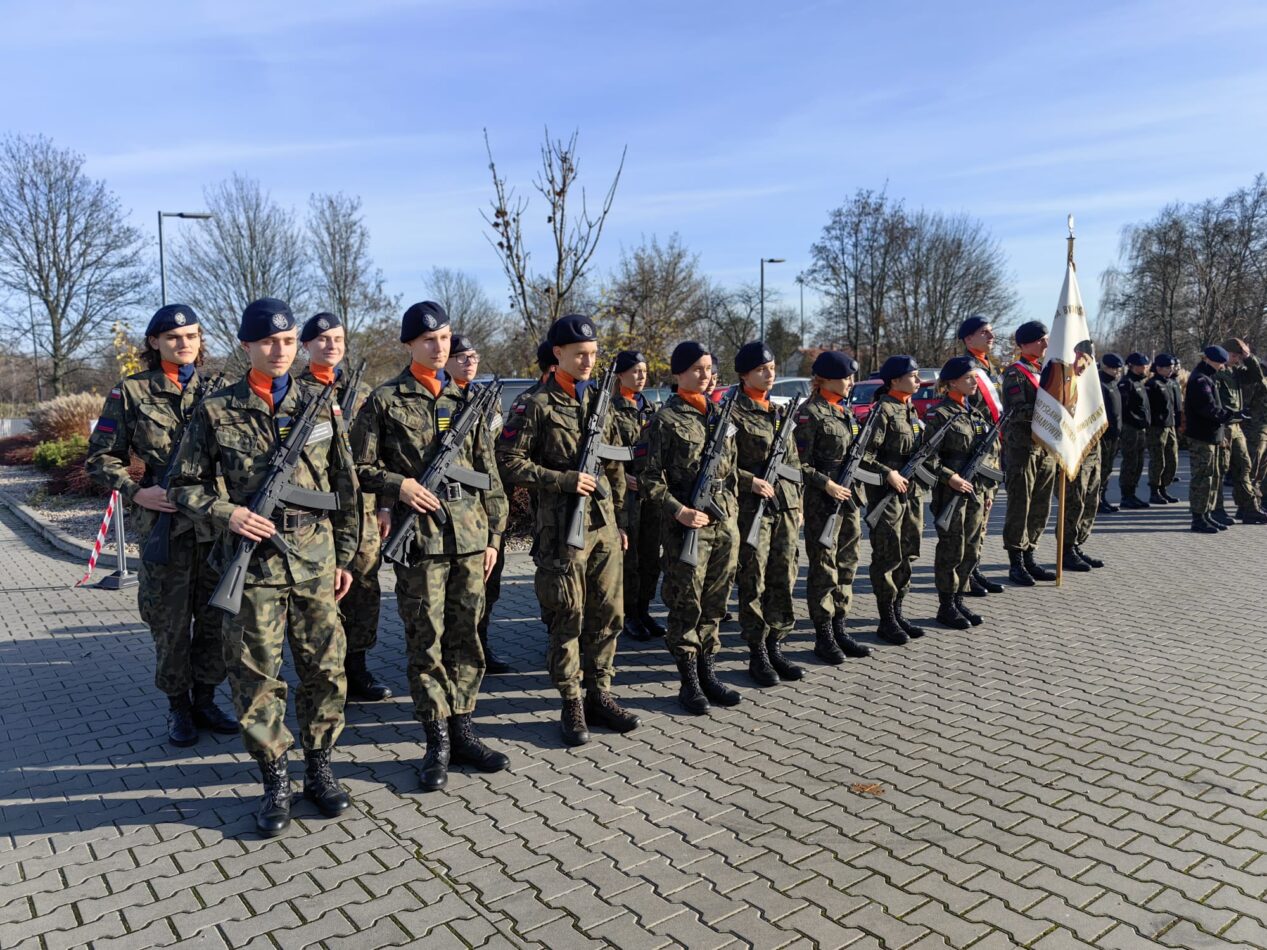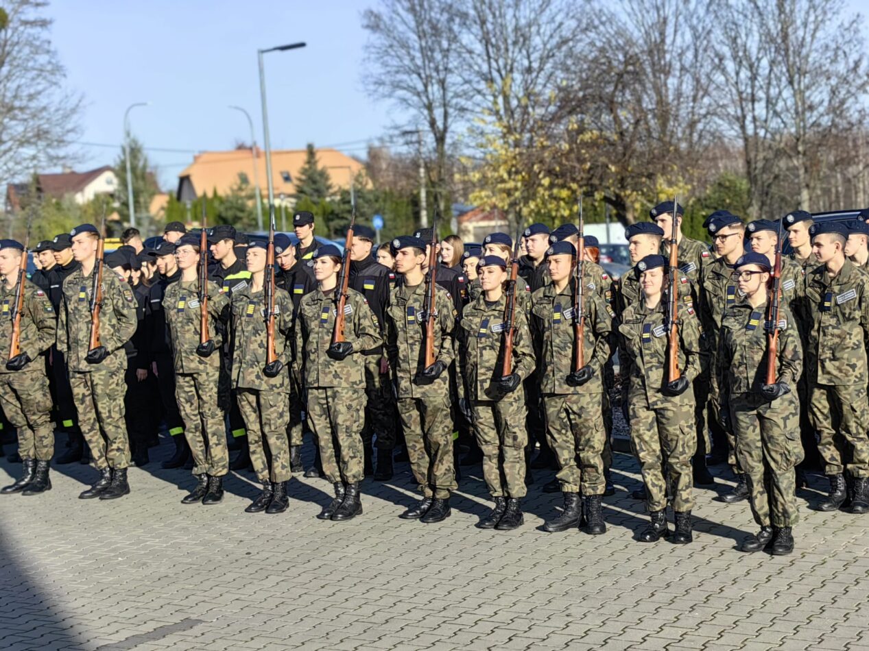 Piękna, jesienna pogoda towarzyszyła szkolnym obchodom Święta Niepodległości, które odbyły się wczoraj. Podczas uroczystości wręczone zostały awanse . Odbył się też pokaz musztry paradnej a na zakończenie defilada.