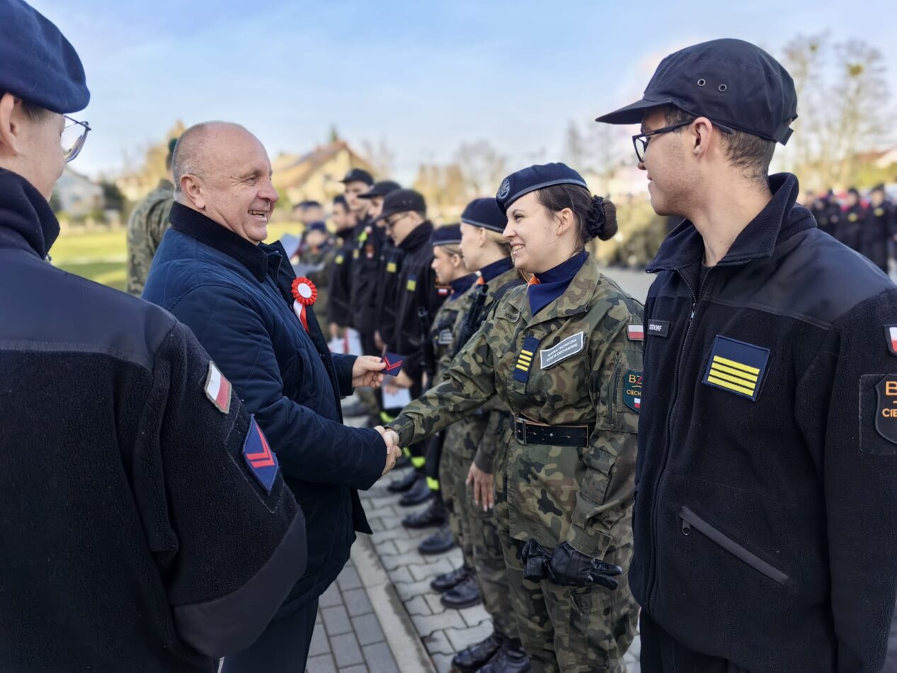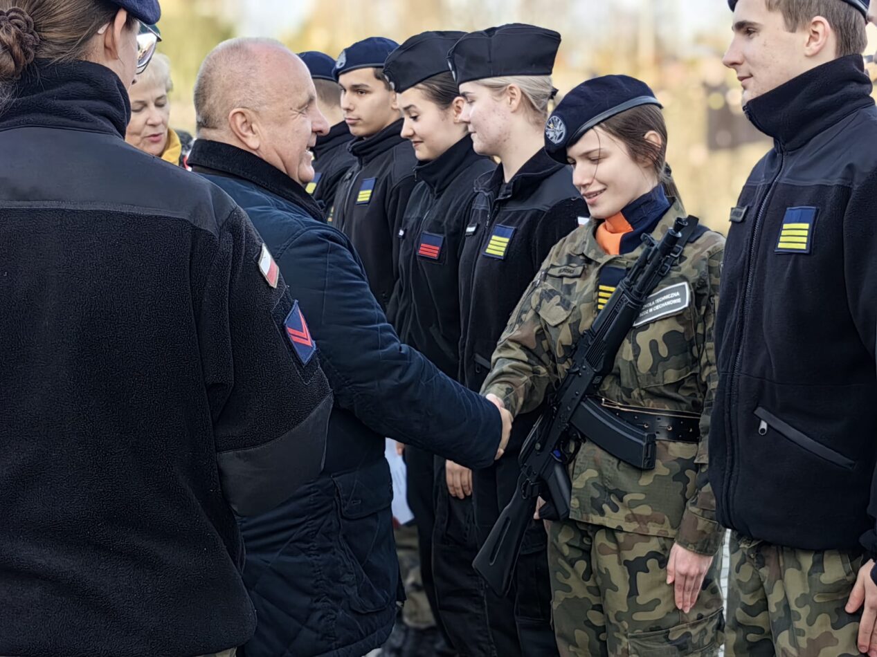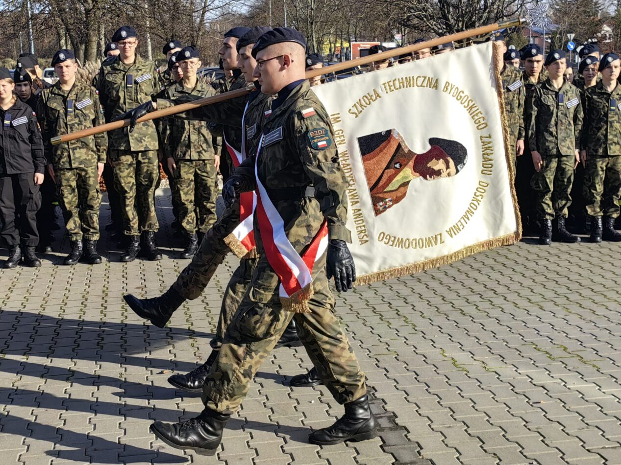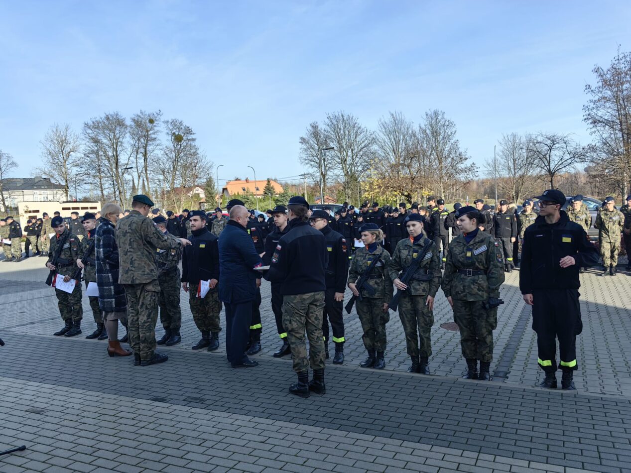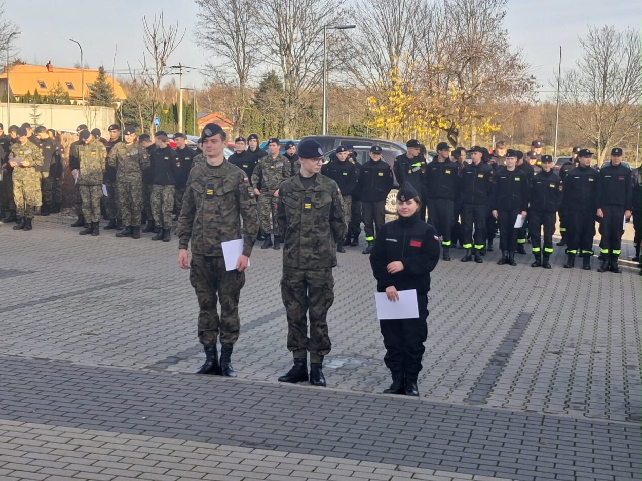 Piękna, jesienna pogoda towarzyszyła szkolnym obchodom Święta Niepodległości, które odbyły się wczoraj. Podczas uroczystości wręczone zostały awanse . Odbył się też pokaz musztry paradnej a na zakończenie defilada.