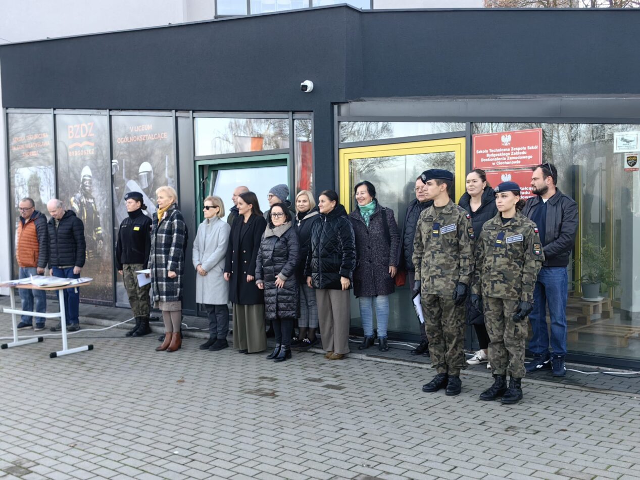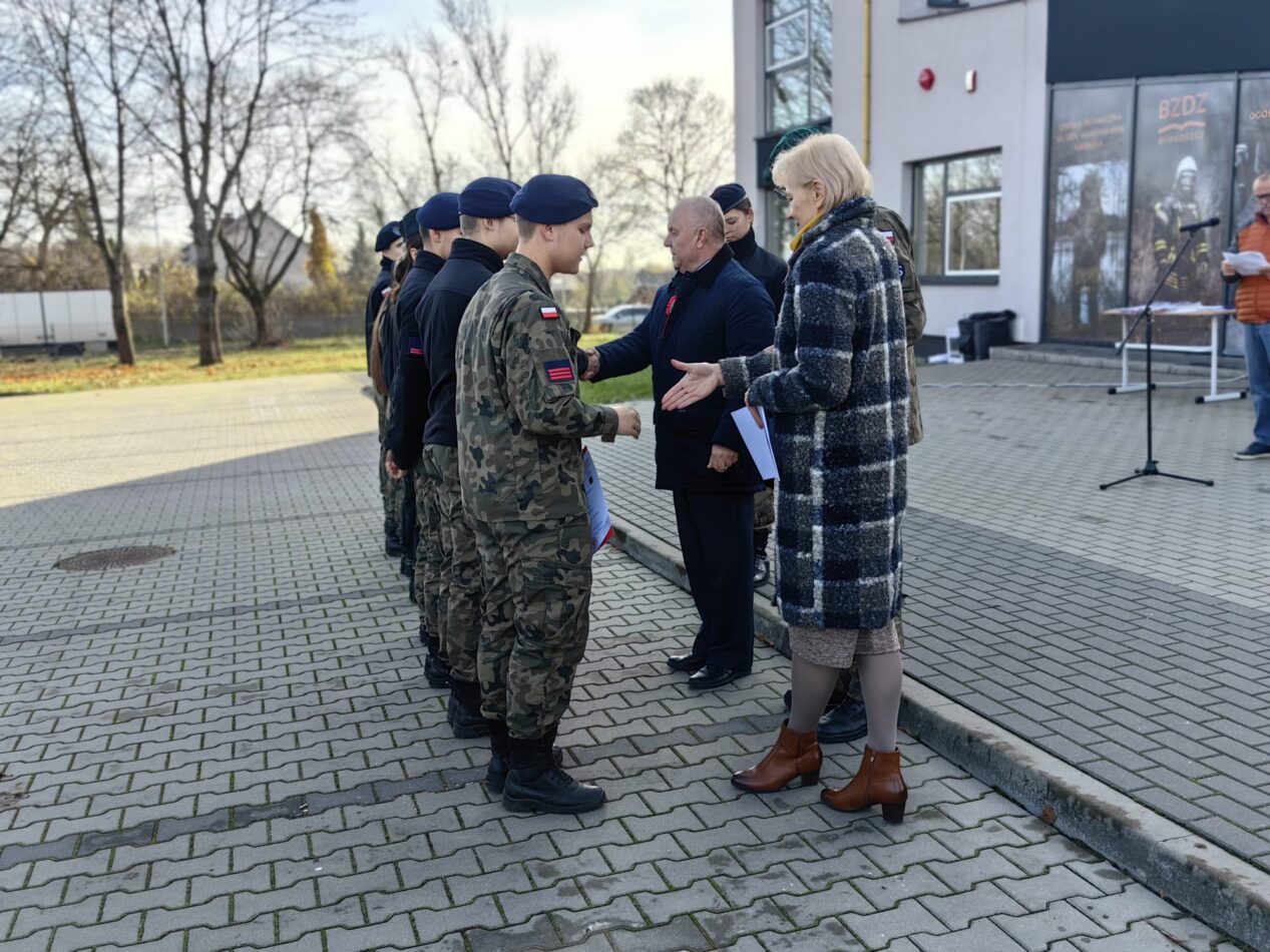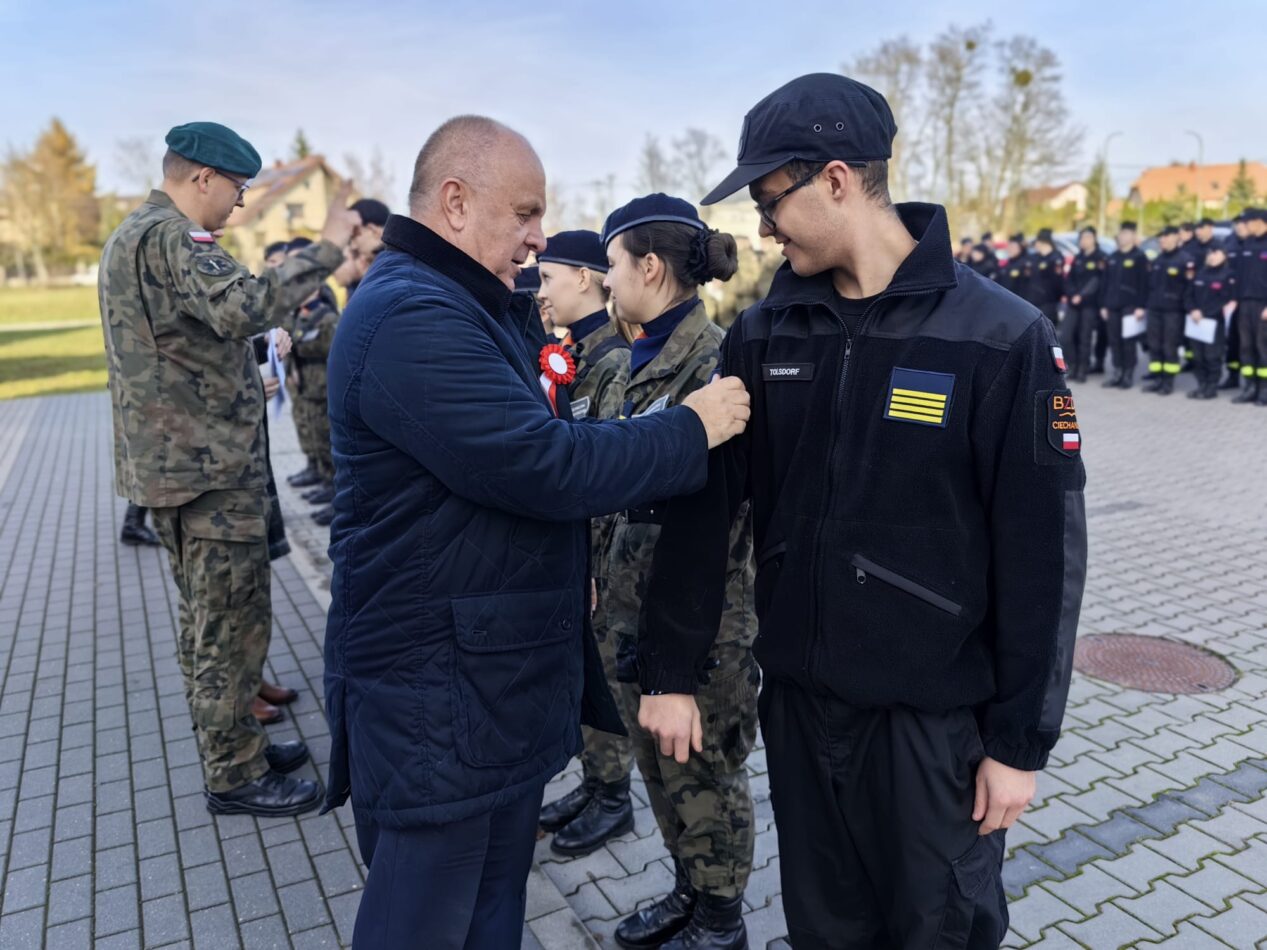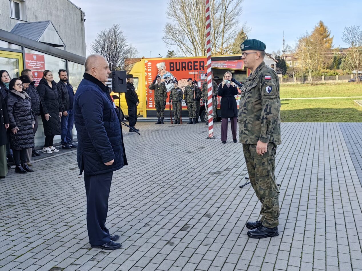 Piękna, jesienna pogoda towarzyszyła szkolnym obchodom Święta Niepodległości, które odbyły się wczoraj. Podczas uroczystości wręczone zostały awanse . Odbył się też pokaz musztry paradnej a na zakończenie defilada.