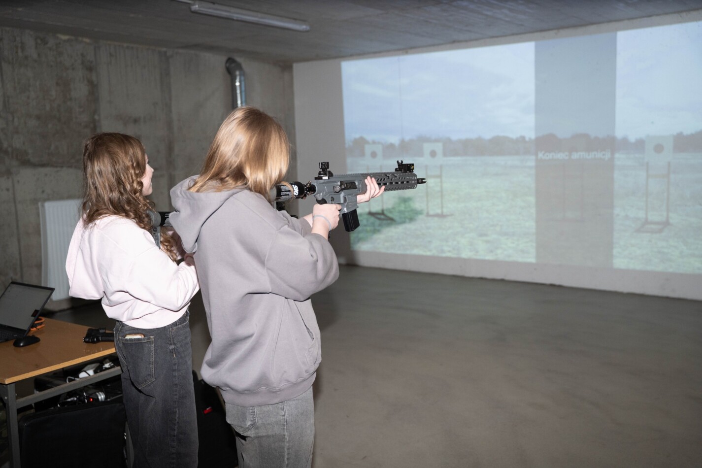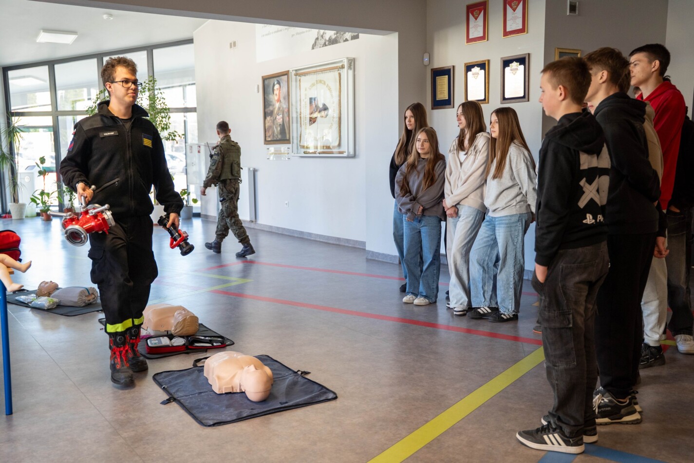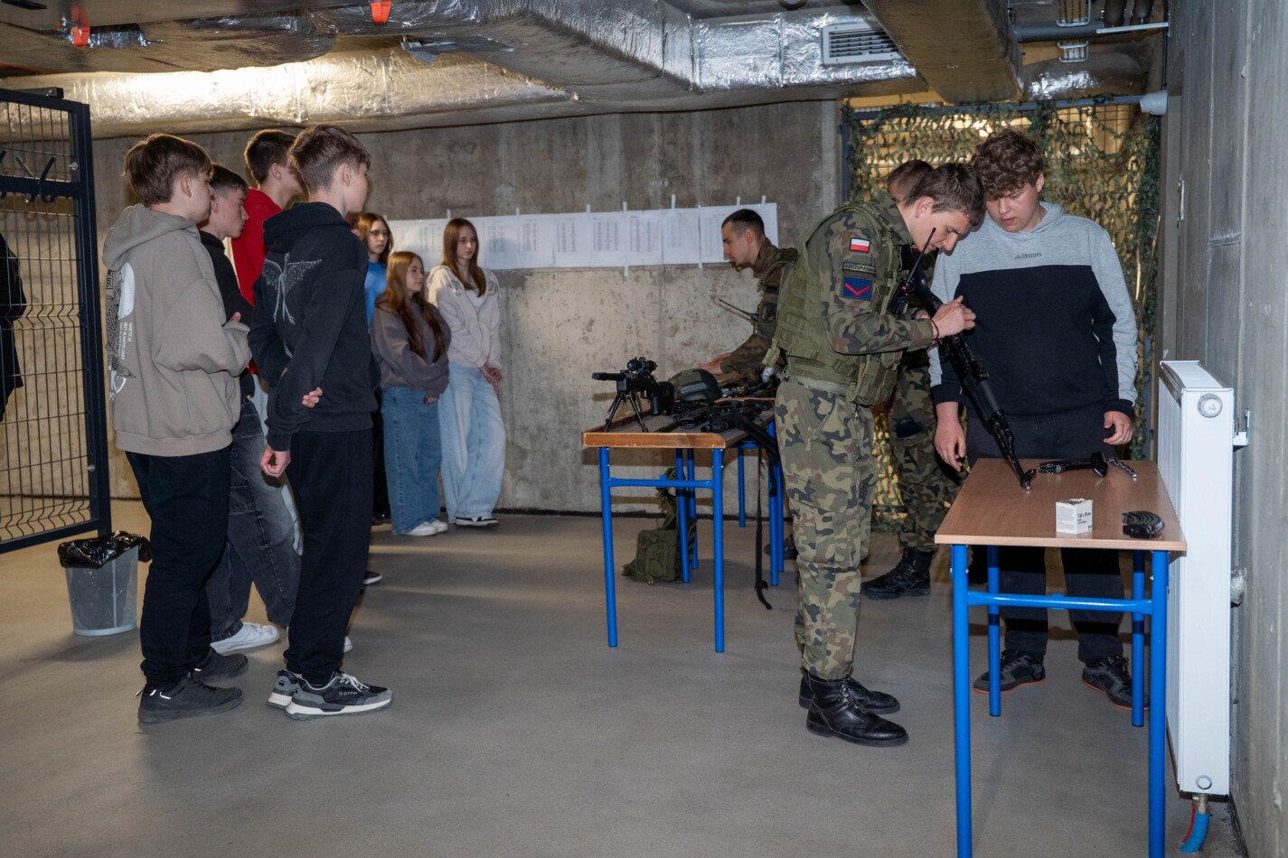 Ósmoklasiści podczas wizyty mogli zobaczyć, jak wygląda nauka w naszej szkole „od środka” – czekały na nich m.in. strzelnica wirtualna, sprzęt wojskowy oraz zajęcia z pierwszej pomocy (RKO, AED).