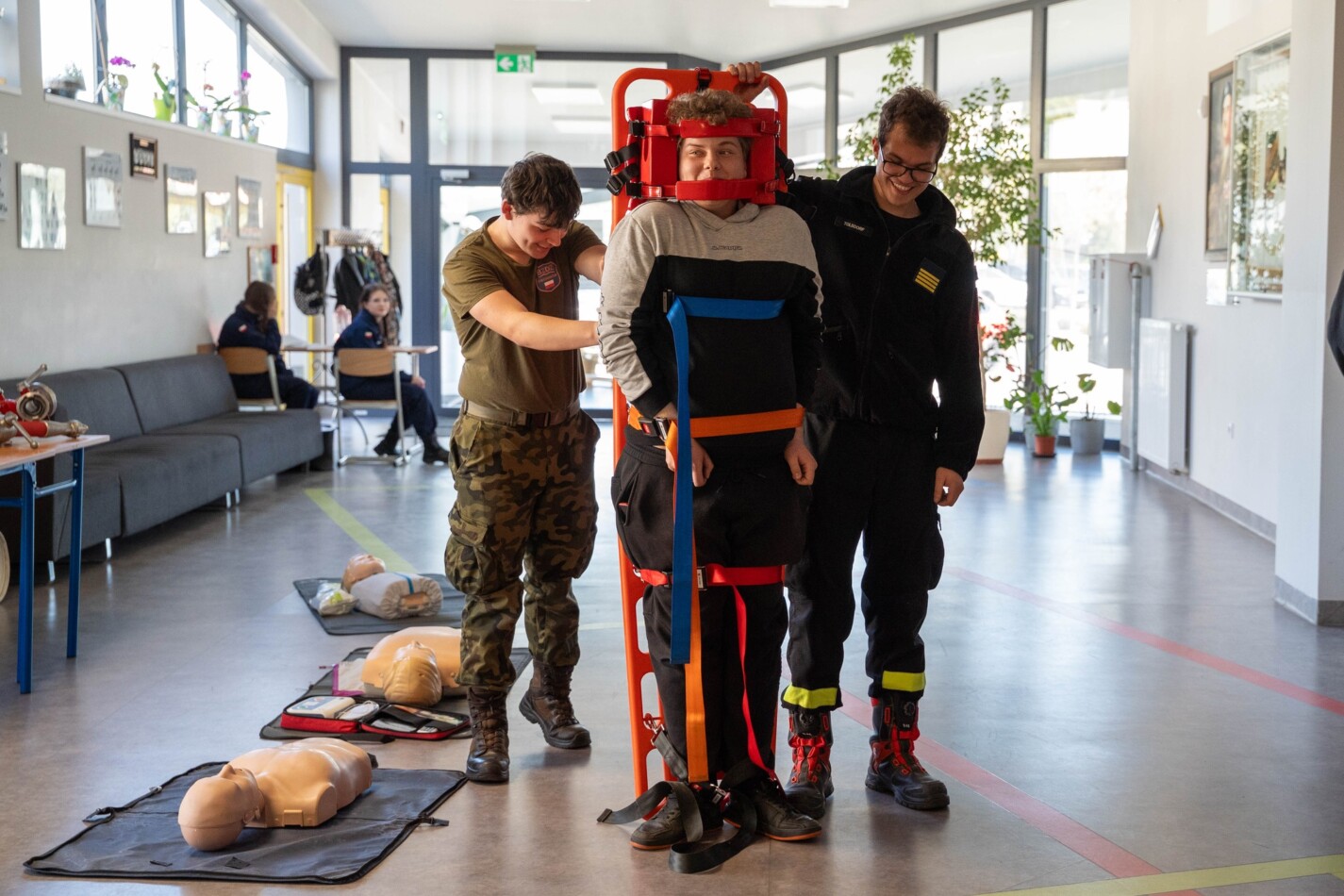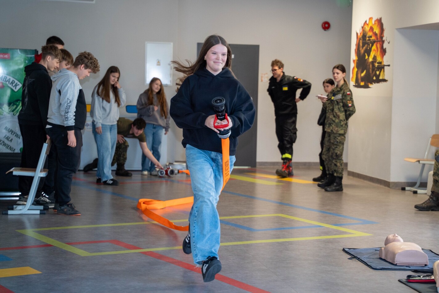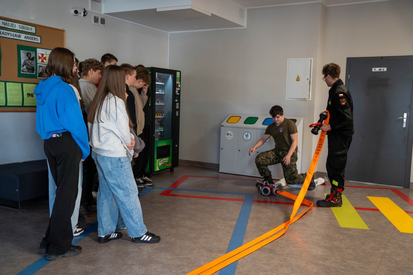 Ósmoklasiści podczas wizyty mogli zobaczyć, jak wygląda nauka w naszej szkole „od środka” – czekały na nich m.in. strzelnica wirtualna, sprzęt wojskowy oraz zajęcia z pierwszej pomocy (RKO, AED).