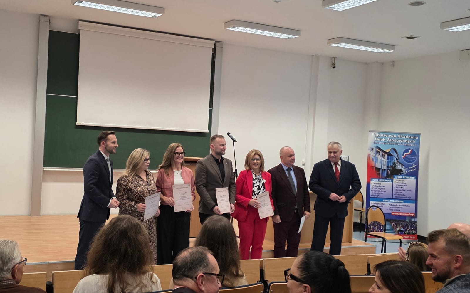 W piątek 21 listopada w auli PANS odbyło się wręczenie dyplomów i podziękowań za zaangażowanie na rzecz renowacji zabytkowych nagrobków. Po raz pierwszy wśród wyróżnionych znalazła się nasza szkoła. Podziękowanie z rąk Prezydenta Ciechanowa Krzysztofa Kosińskiego oraz Prezesa Stowarzyszenia Wolontariat Pamięci Romana Niesiobędzkiego odebrał Dyrektor ST BZDZ Dariusz Mosakowski.