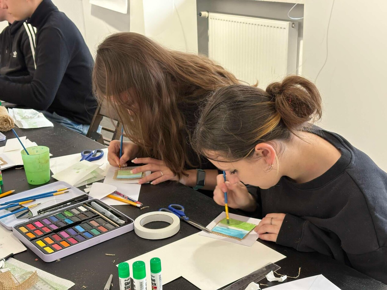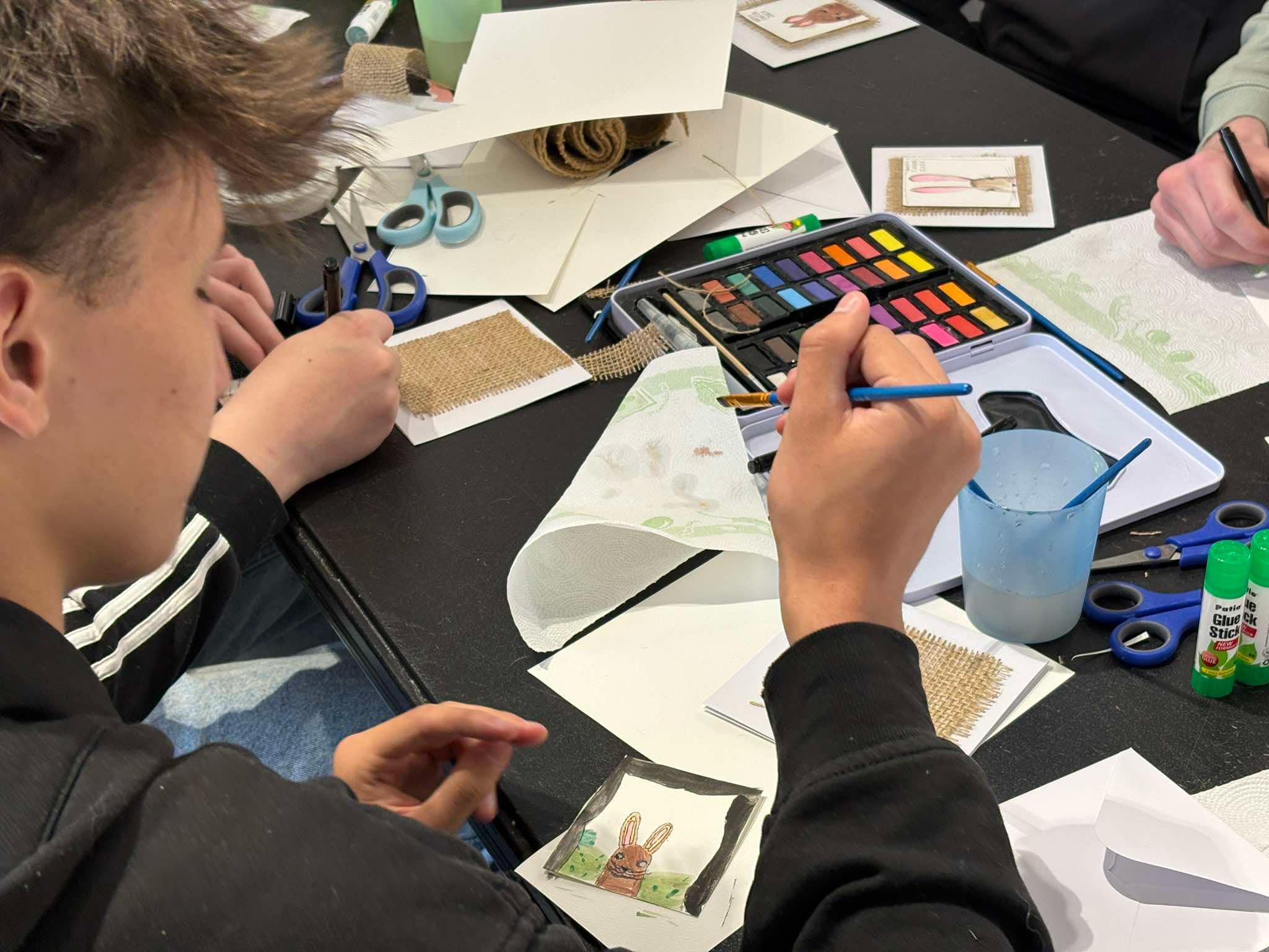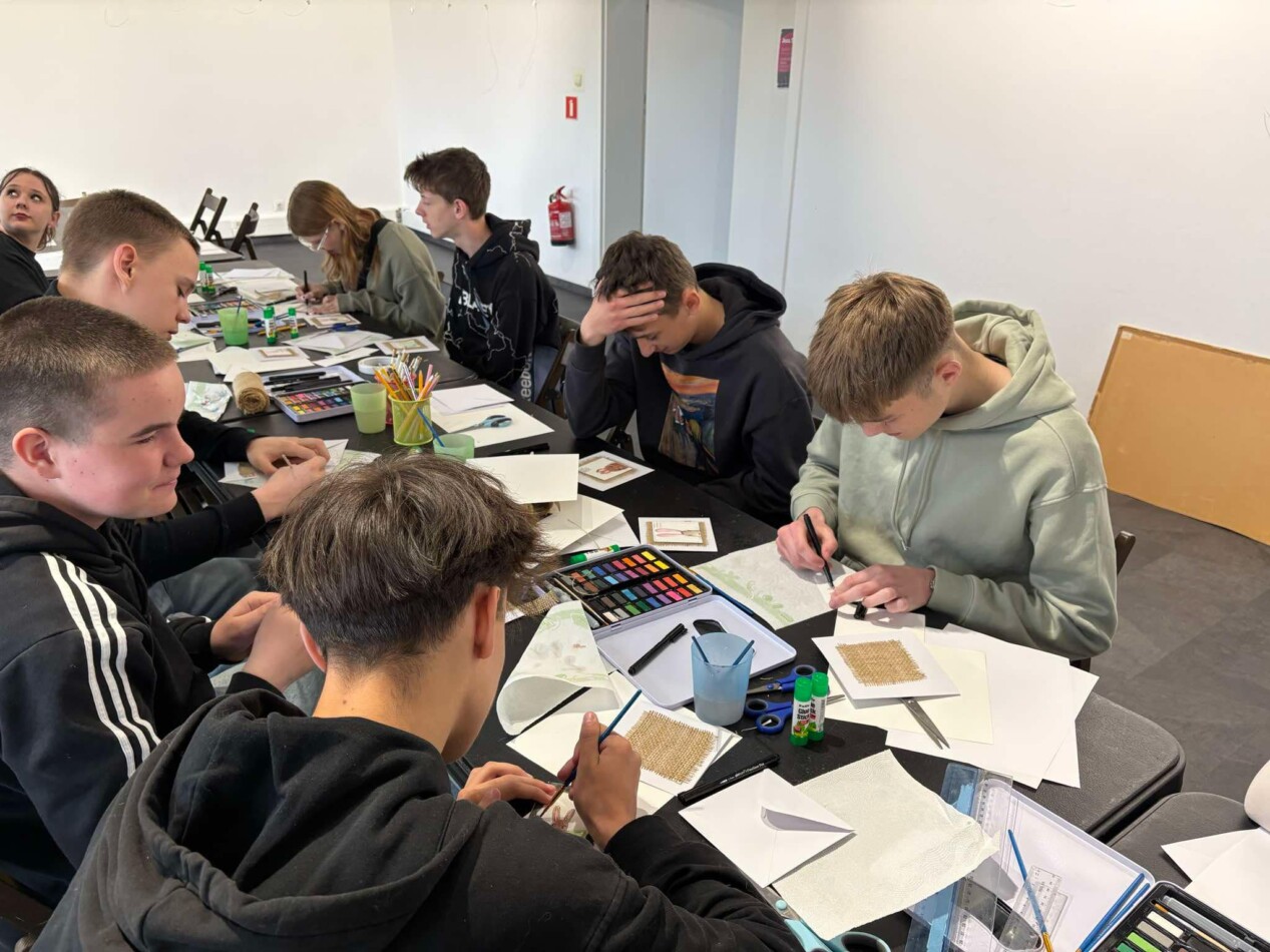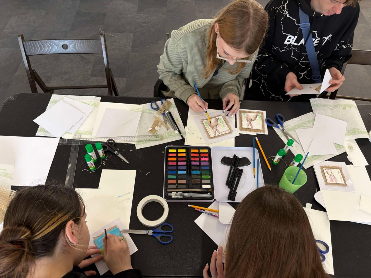1b odwiedziła Domek na Wodzie, gdzie pod czujnym okiem Pani Urszuli Cecylii Michalskiej tworzyli wielkanocne kartki pocztowe .