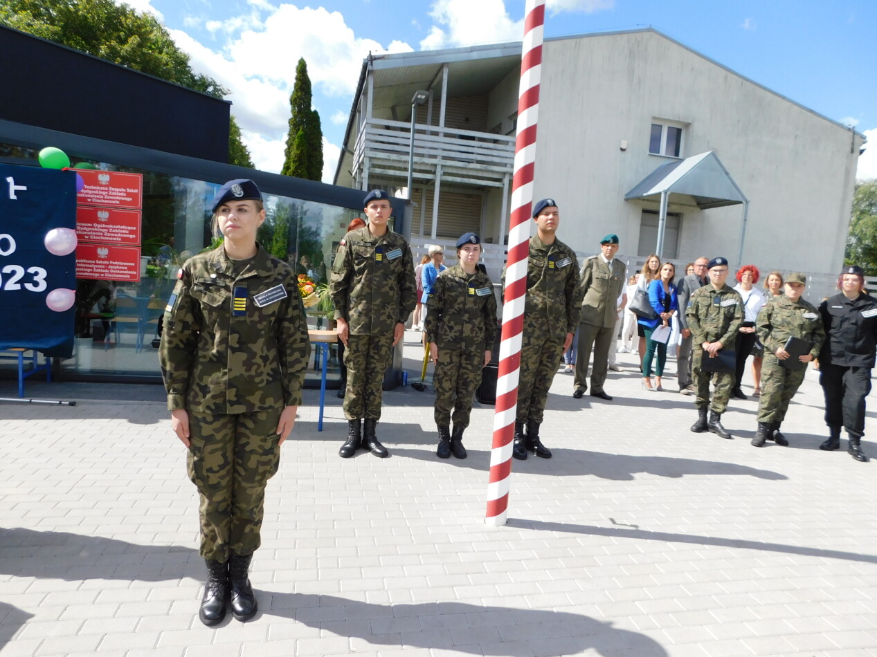 Nie zabrakło również przedstawicieli jednostek, z którymi szkoły BZDZ współpracują: Komendę Powiatową Policji w Ciechanowie reprezentowała nadkomisarz Jolanta Bym, ppłk. Piotr Cichocki był obecny z ramienia 2. Ośrodka Radioelektronicznego w Przasnyszu oraz por. Arkadiusz Boroń reprezentował V Mazowiecką Brygadę Obrony Terytorialnej. W trakcie uroczystości ppłk. Piotr Cichocki odczytał list Wiceprezesa Rady Ministrów Ministra Obrony Narodowej Mariusza Błaszczaka z życzeniami dla uczniów rozpoczynających rok szkolny. Szkole został przekazany „Kalendarz z mundurem”, zawierający ciekawe materiały dotyczące historii naszego kraju i Wojska Polskiego.
