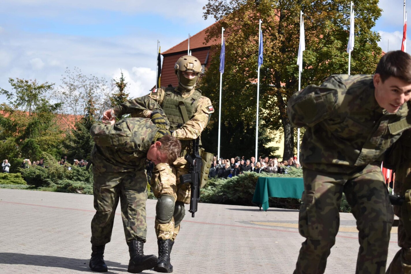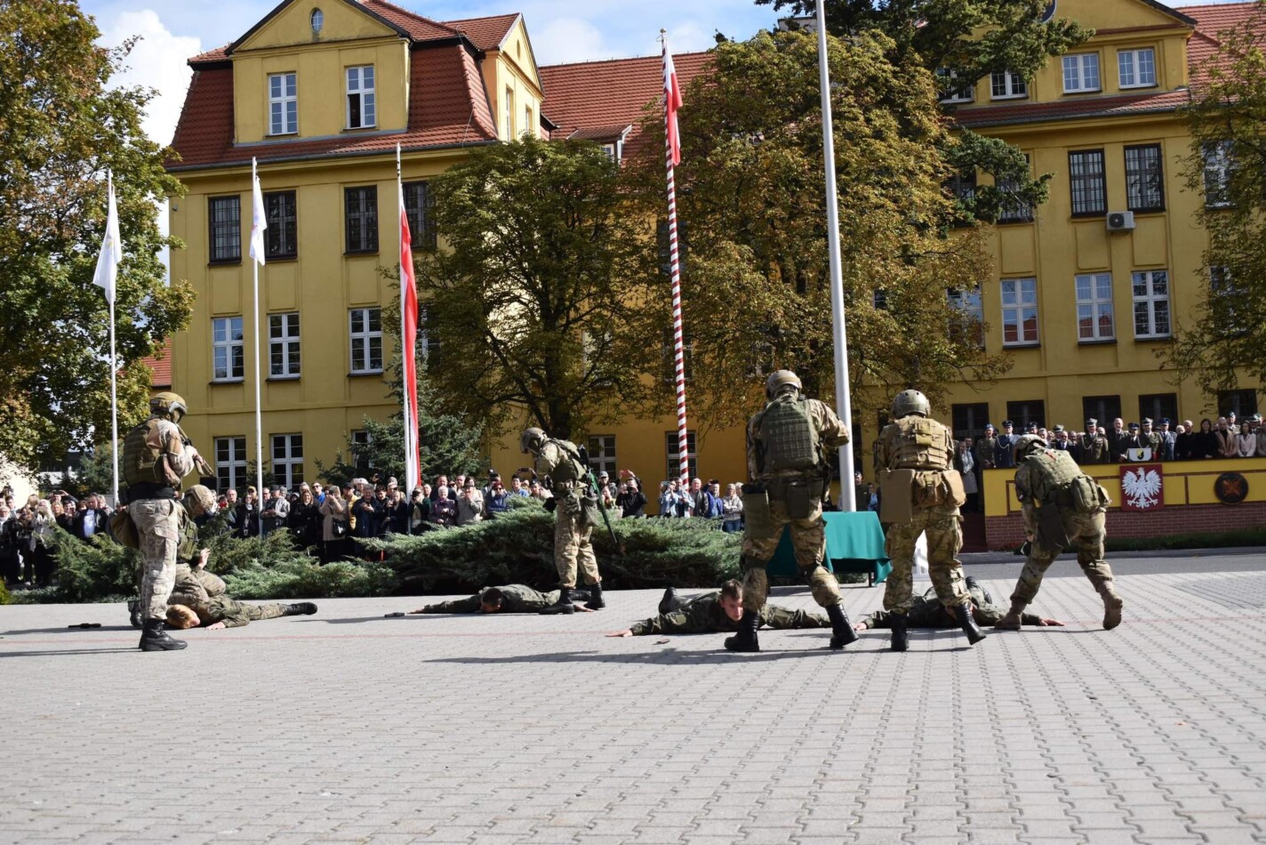 Po części oficjalnej uczniowie i wszyscy zgromadzeni zostali zaproszeni na pokaz grupy taktycznej.