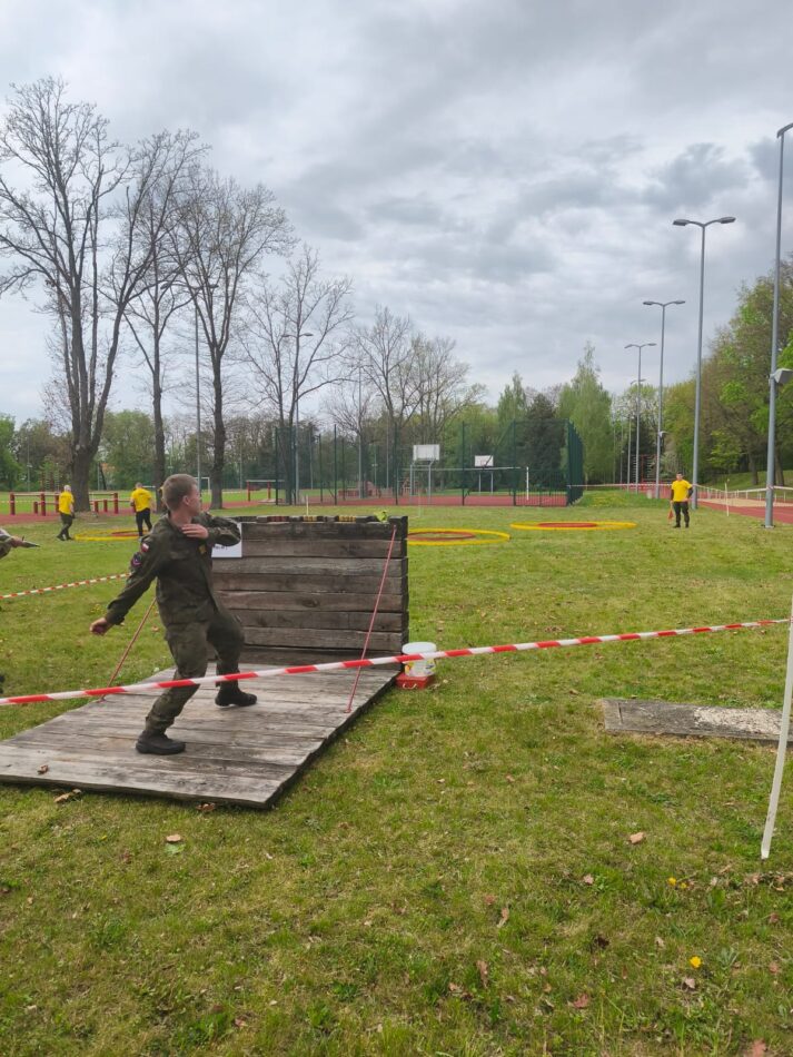 Reprezentacja naszej szkoły w składzie: Marta Rudzińska i Karol Kwiatkowski z klasy 4a oraz Bartek Kamiński z klasy 3a wzięła udział w Spartakiadzie sportowo – obronnej klas wojskowych w Mazowieckim Ośrodku Centralnego Wojskowego Centrum Rekrutacji. Niestety z powodu kontuzji Karola naszej drużynie nie udało się ukończyć rywalizacji.