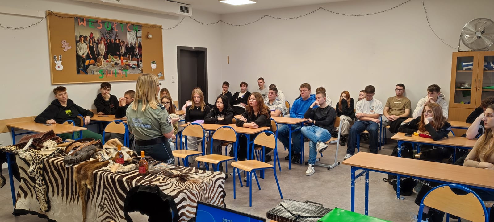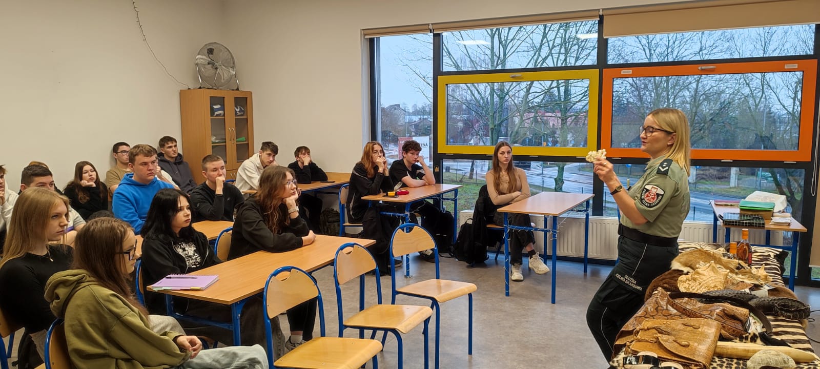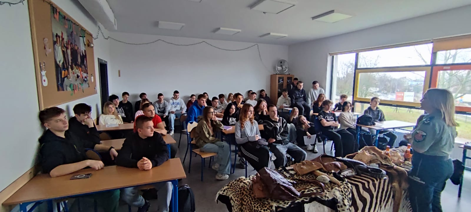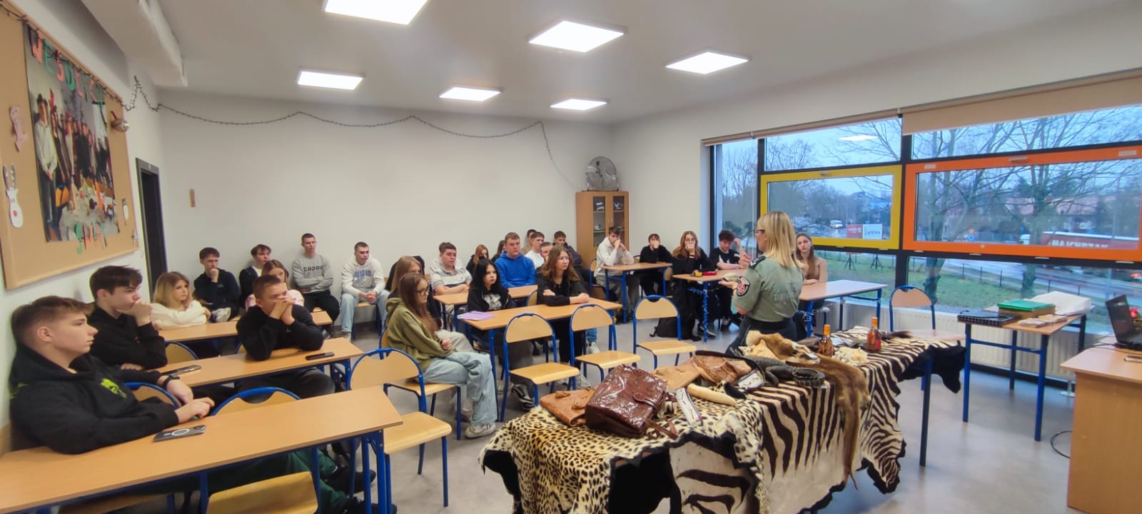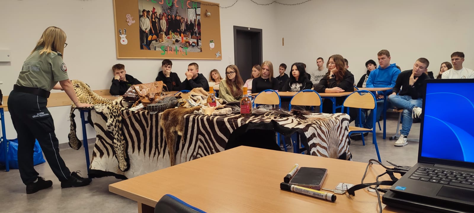 We wtorek 9 grudnia naszą szkołę odwiedzili funkcjonariusze Mazowieckiego Urzędu Celno-Skarbowego w Warszawie, którzy przeprowadzili warsztaty z podstawowej wiedzy teoretycznej i praktycznej z zakresu przepisów Konwencji CITES tj. identyfikowania okazów zagrożonych gatunków oraz wykrywania i zwalczania nielegalnego międzynarodowego handlu dziką fauną i florą. Uczniowie szkoły mieli okazję zobaczyć okazy zagrożonych gatunków pochodzące między innymi z przemytu oraz materiał wideo z programu telewizyjnego o nielegalnym handlu, przemycie oraz wykorzystaniu zagrożonych gatunków.