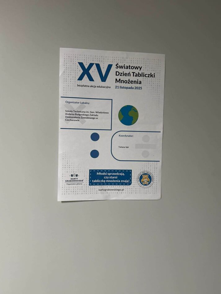 Światowy Dzień Tabliczki Mnożenia to międzynarodowa akcja, która odczarowuje matematykę i udowadnia, że nauka przez zabawę przynosi najlepsze efekty. Głównym celem akcji jest promowanie matematyki w przyjazny i nieformalny sposób. W tym roku uczniowie klas I,II i III naszej szkoły brali udział w specjalnie przygotowanym tekście online oraz rozwiązywali różne łamigłówki matematyczne. Wydarzenie spotkało się z dużym zainteresowaniem i zaangażowaniem młodzieży.